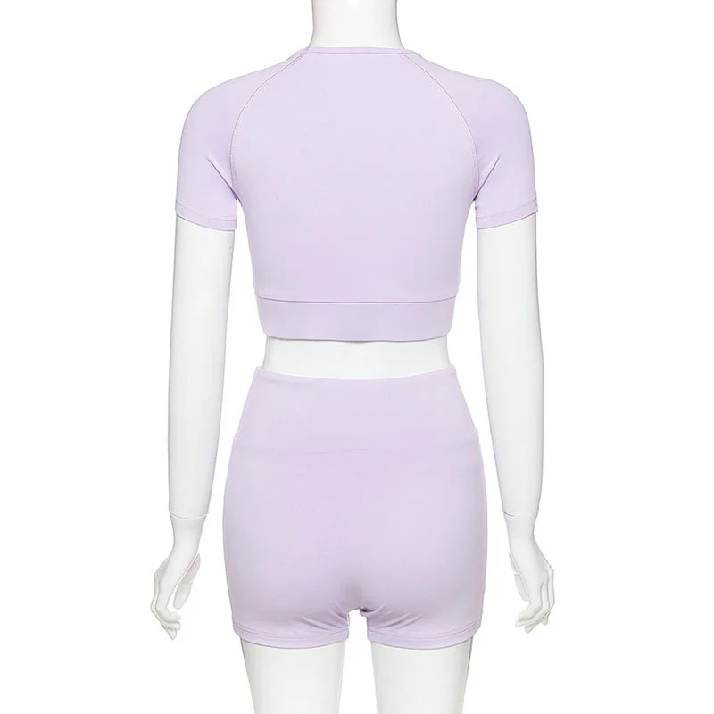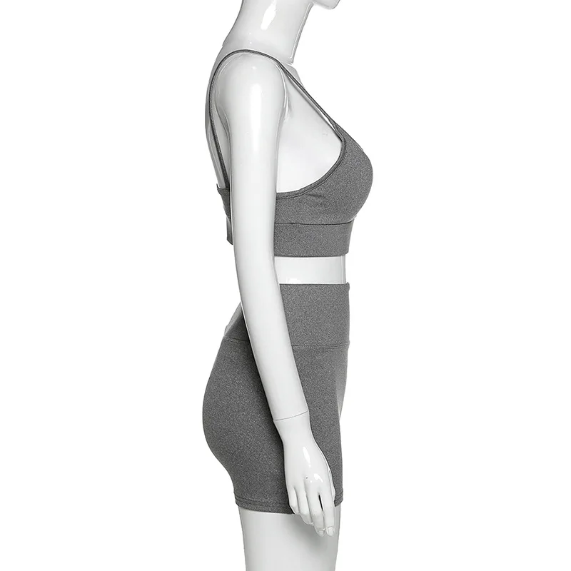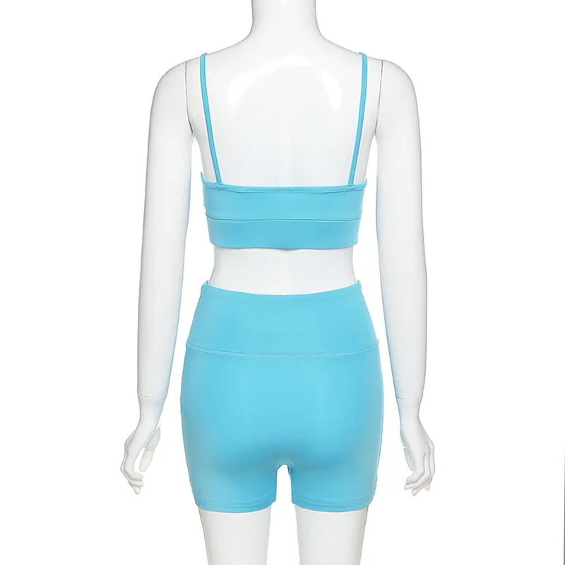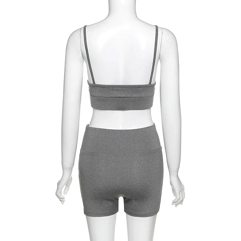 Летний спортивный женский комплект из 2 предметов, укороченный топ и бюстгальтер, спортивные шорты, спортивный костюм для йоги, тренировочный наряд, комплект для фитнеса и спортзала, одежда