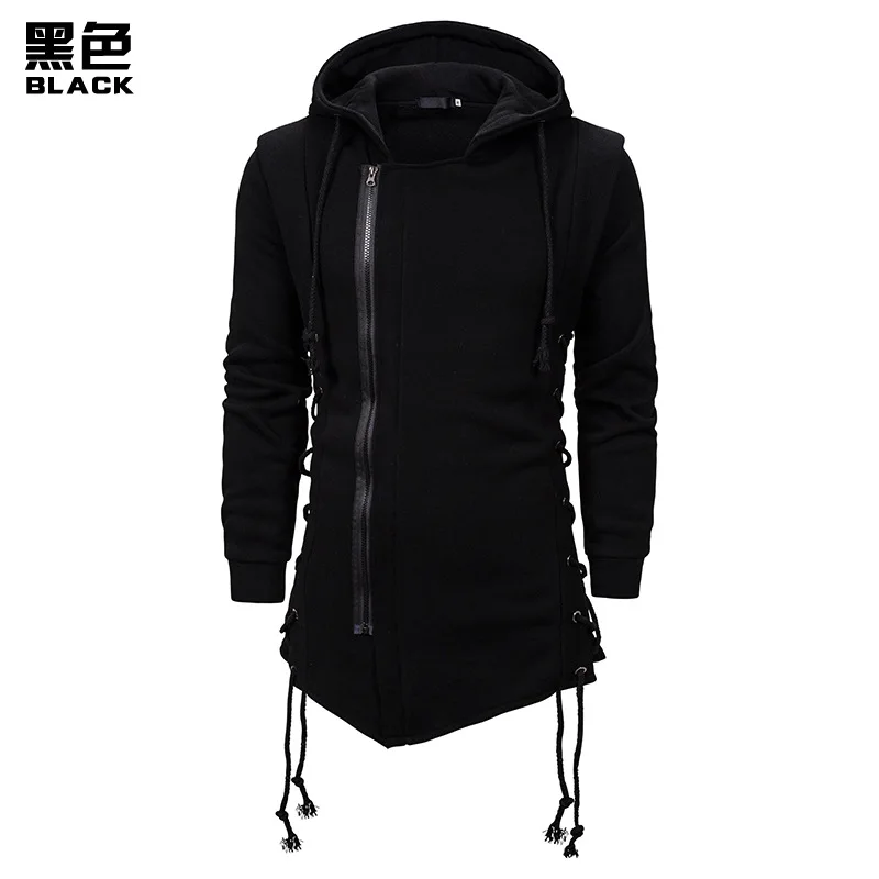 Мужские черные хипстерские толстовки на молнии с поясом, свитшоты 2...
