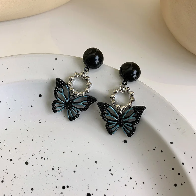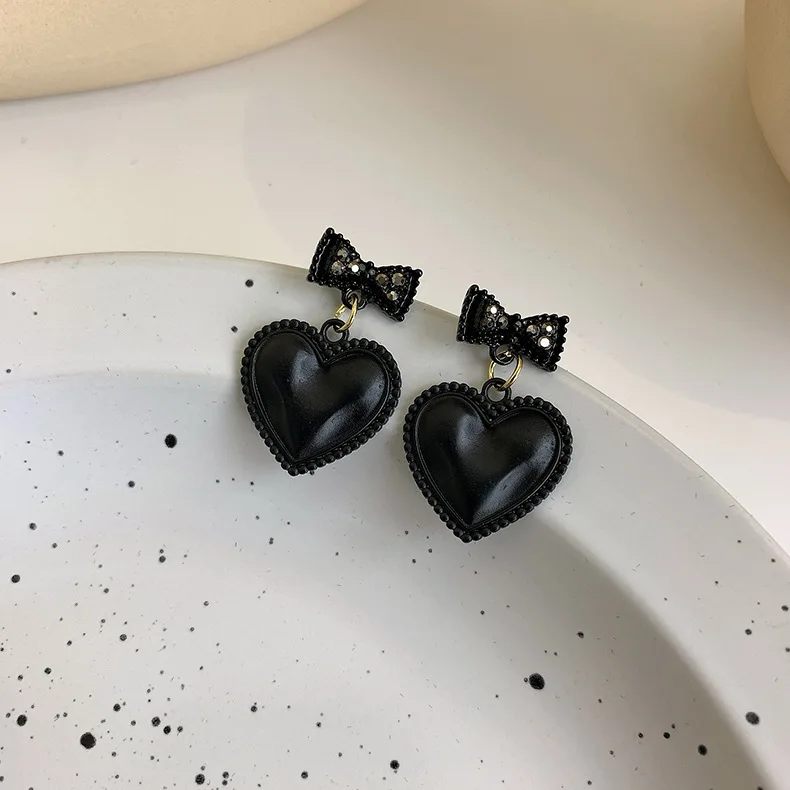 Женские серьги-подвески в виде сердца и цветка, черные корейские серьги в форме бабочки, 2021