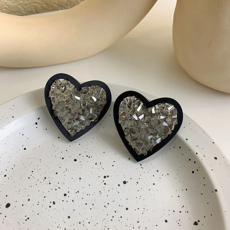 Оригинальные летние модные черные хрустальные сердца белые цветочны...