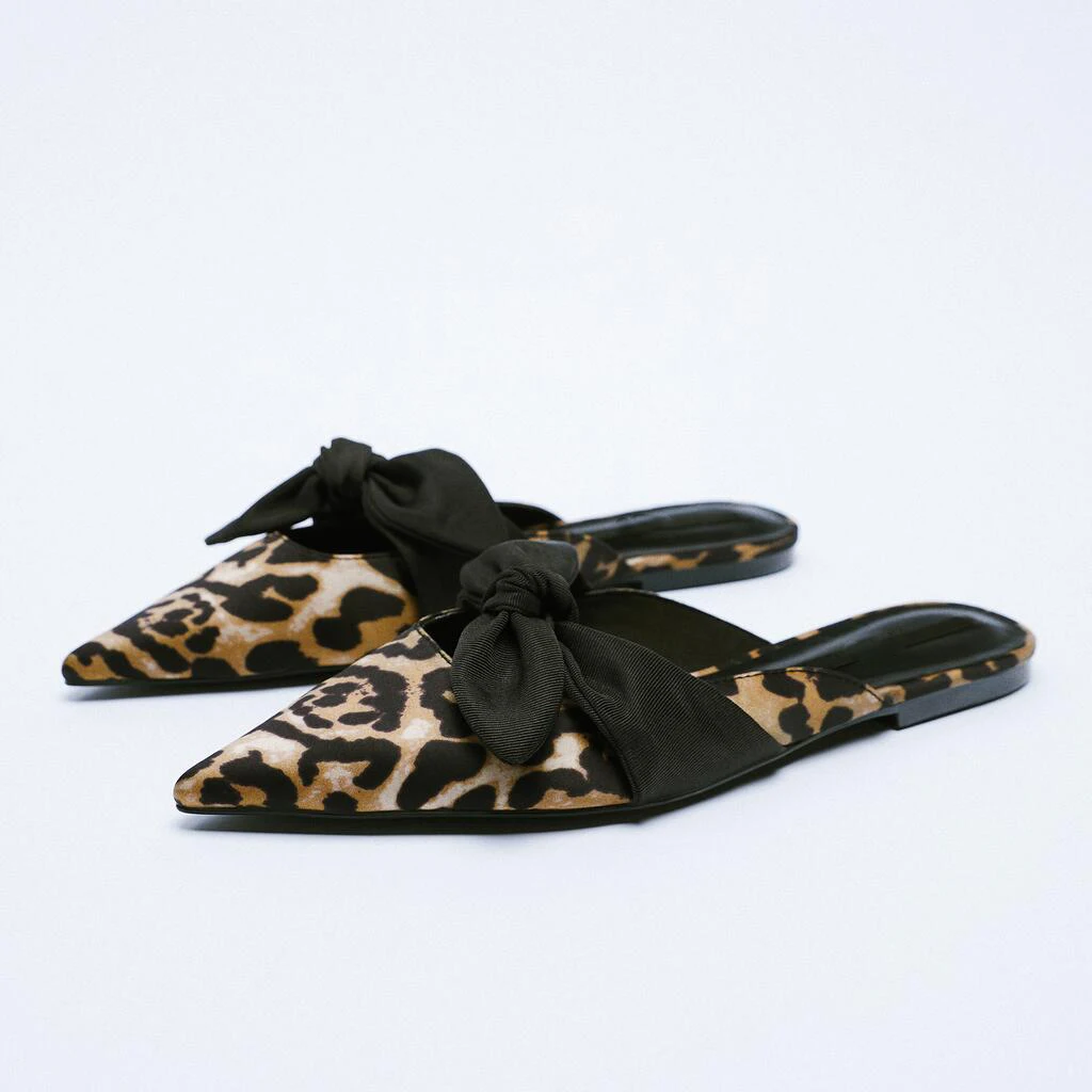 Женские туфли с леопардовым принтом и бантом, на плоской подошве