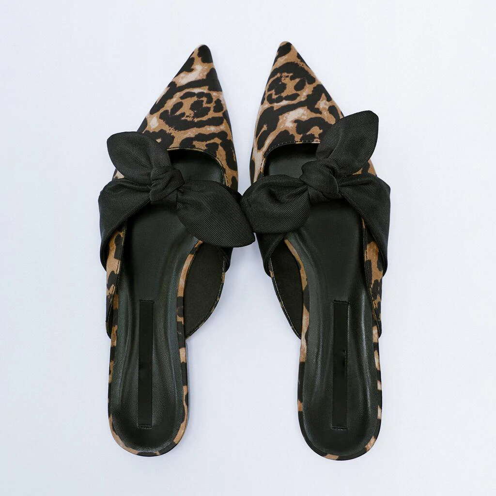 Женские туфли без задника с бантом, заостренным носком, на плоской ...