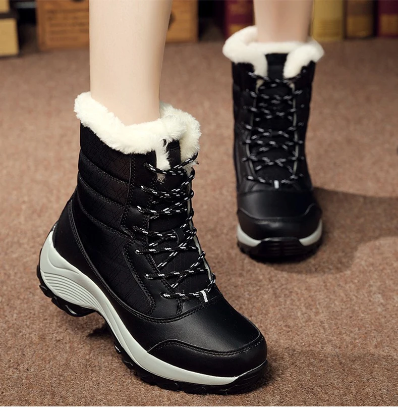 Женские ботинки; Белые зимние женские ботильоны; Супер теплые зимние ботинки; Botas De Mujer; Черные ботинки на платформе и каблуке; Женские ботинки