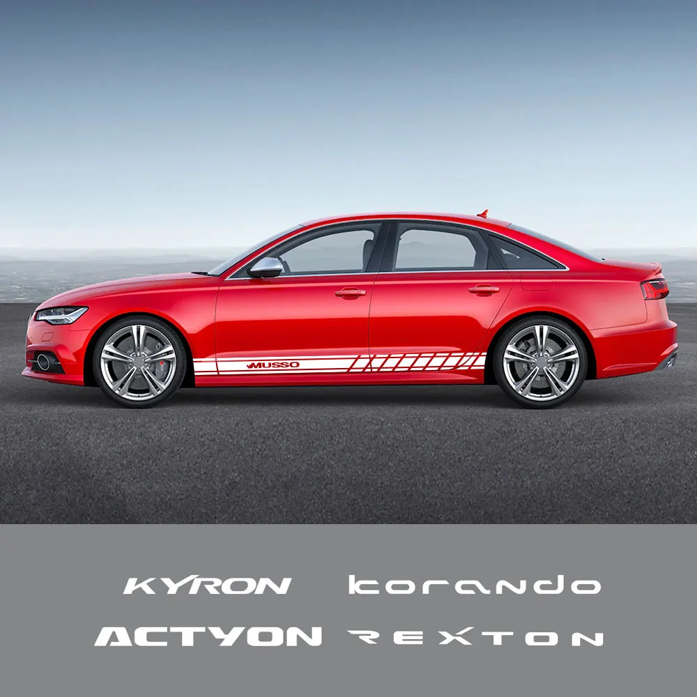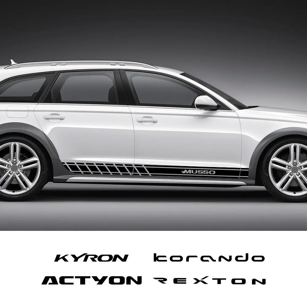 2 шт., автомобильная дверь, боковая юбка, полосы, виниловые наклейки, авто Декор, Аксессуары Для SsangYong Actyon Korando Kyron Musso Rexton Tivoli