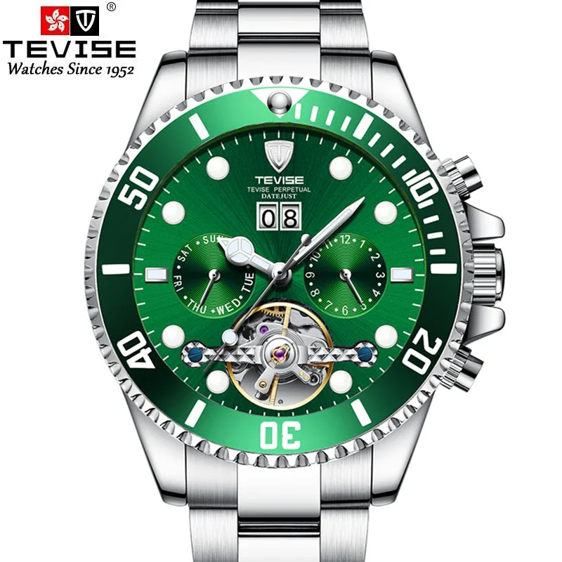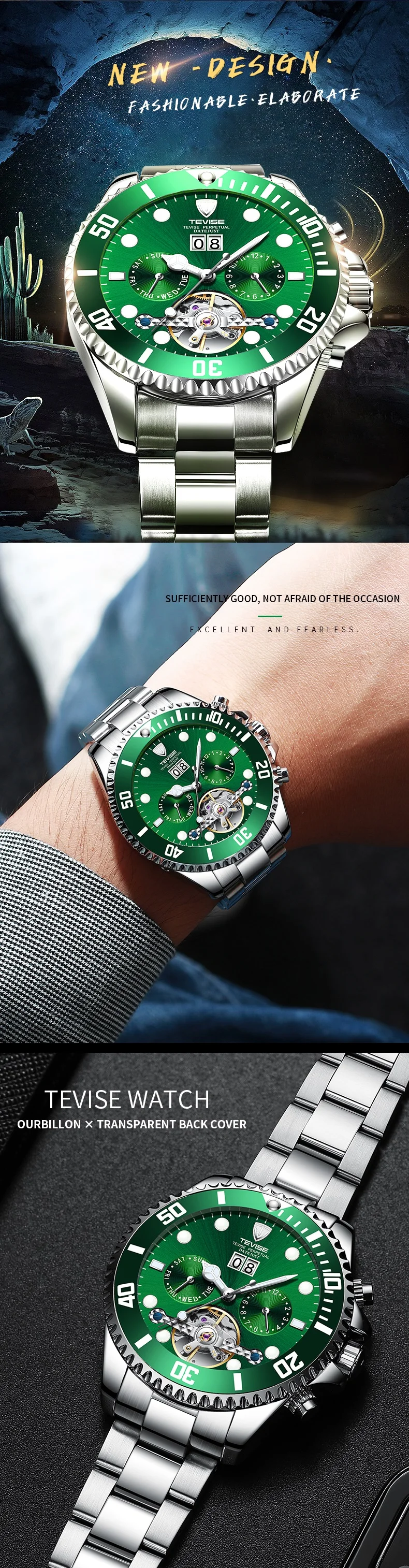 TEVISE зеленая вода призрак механические часы Для Мужчин's Водонепр...