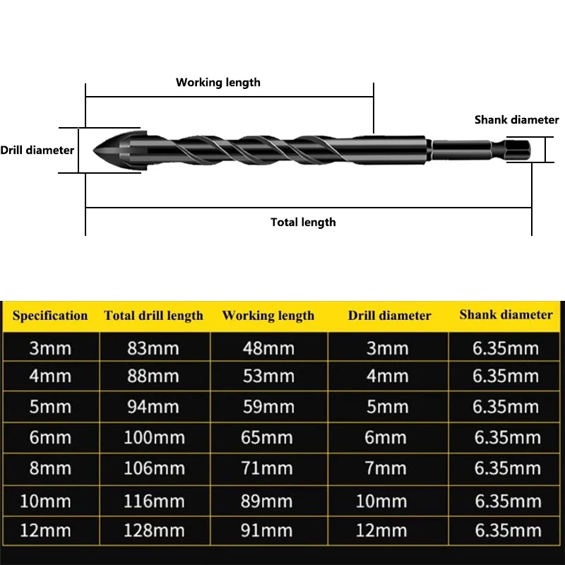 Сверло перекрестное YG6X, 3-12 мм, 14 дюйма, шестигранный хвостовик, из твердого сплава, многофункциональный Дырокол с 4 режущими кромками для электродрели