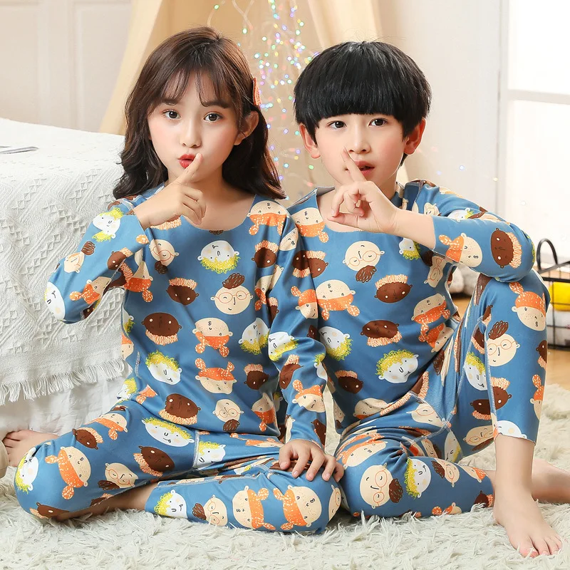 Детский пижамный комплект с длинным рукавом, пижама для маленьких мальчиков и девочек, домашняя одежда с рисунком из мультфильма, детская одежда для сна, одежда, термобелье, комплекты пижам