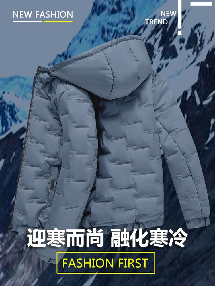 Модная зимняя мужская куртка с капюшоном, мужское теплое ветрозащитное пальто, мужские плотные теплые куртки на молнии, мужские однотонные пуховики