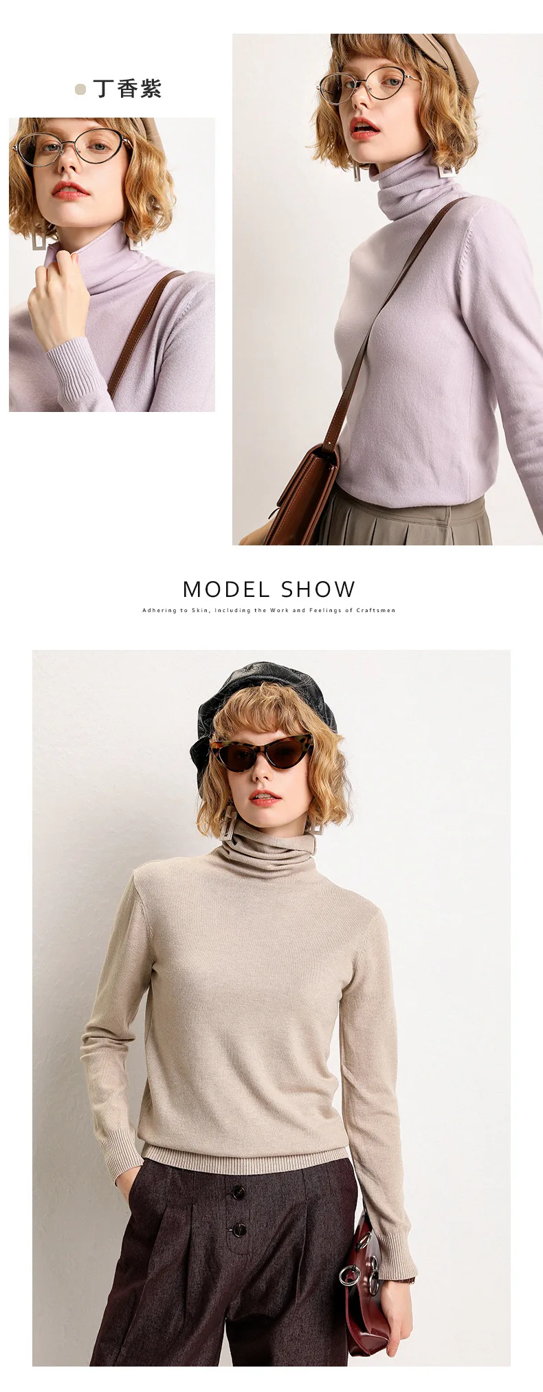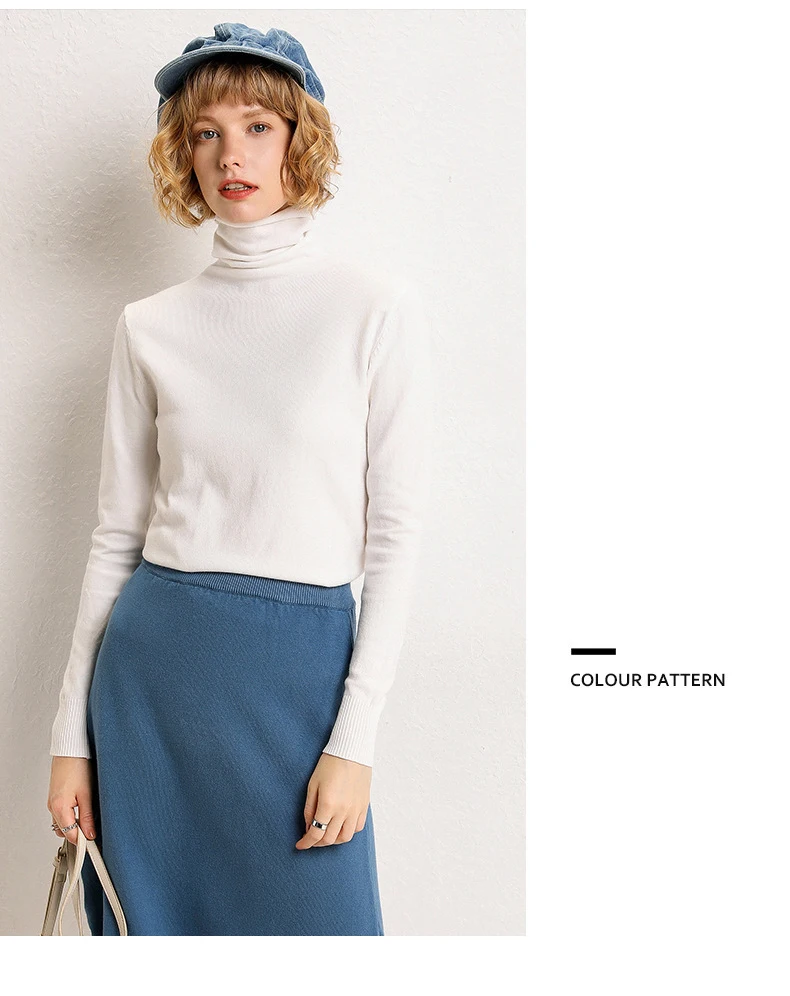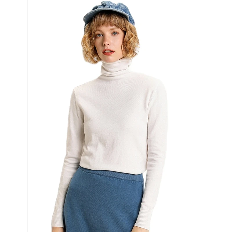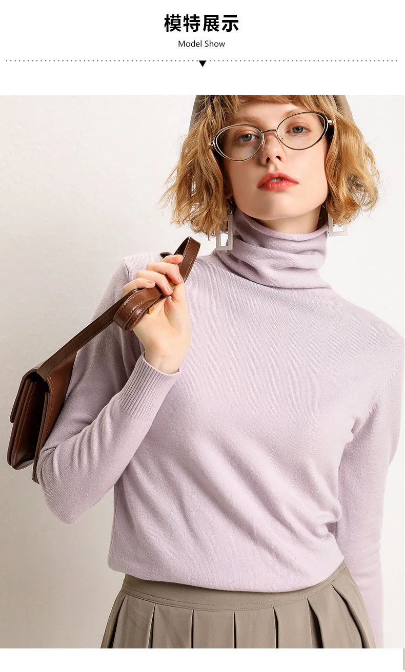 Свитер с высоким воротником, Женский пуловер, сезон осень-зима 2022, однотонный Универсальный вязаный джемпер из смеси кашемира и хлопка, женский зимний джемпер