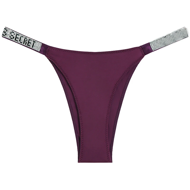 Стринги женские шелковые бесшовные, розовые, с надписью, стразы, трусики с логотипом