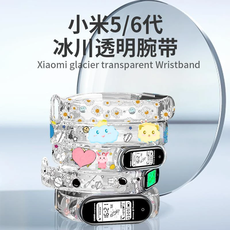 Ремешок силиконовый для Xiaomi mi band 3 4 5, прозрачный сменный Браслет с мультяшным рисунком для xiaomi mi band 5 6