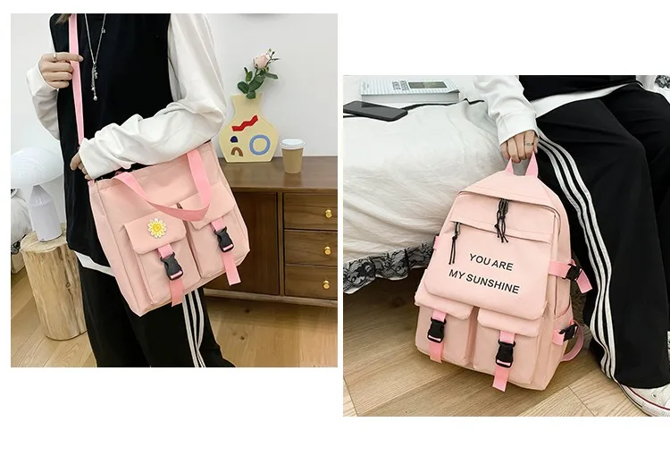 5 шт.комплект, холщовый рюкзак для девочек-подростков