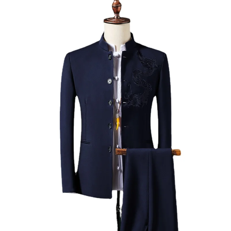 Новый китайский стиль, мужской свадебный банкетный костюм, черный, ...