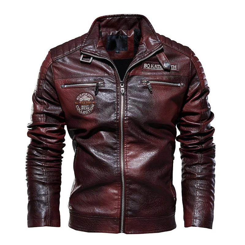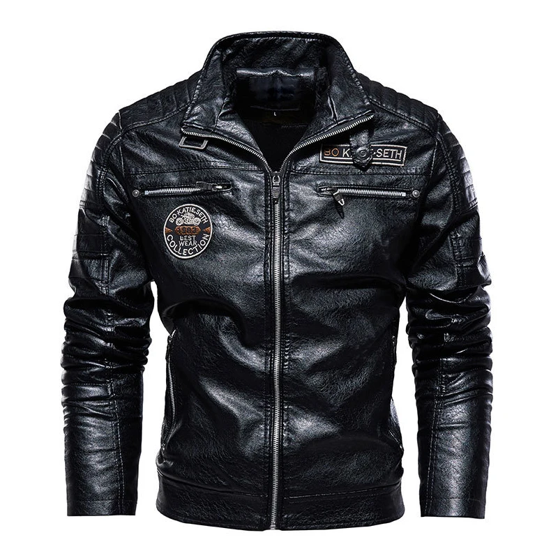Куртка мужская Байкерская из экокожи, на молнии, с длинным рукавом и шерстяной подкладкой