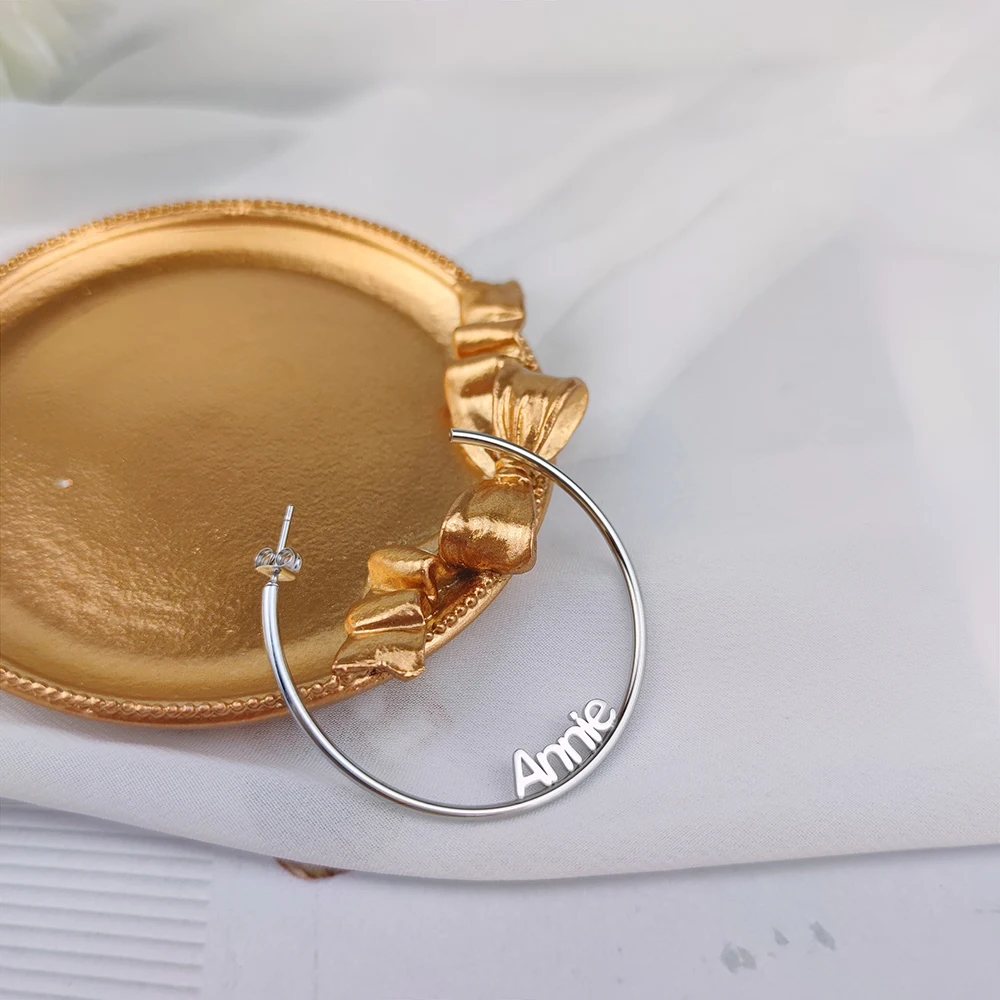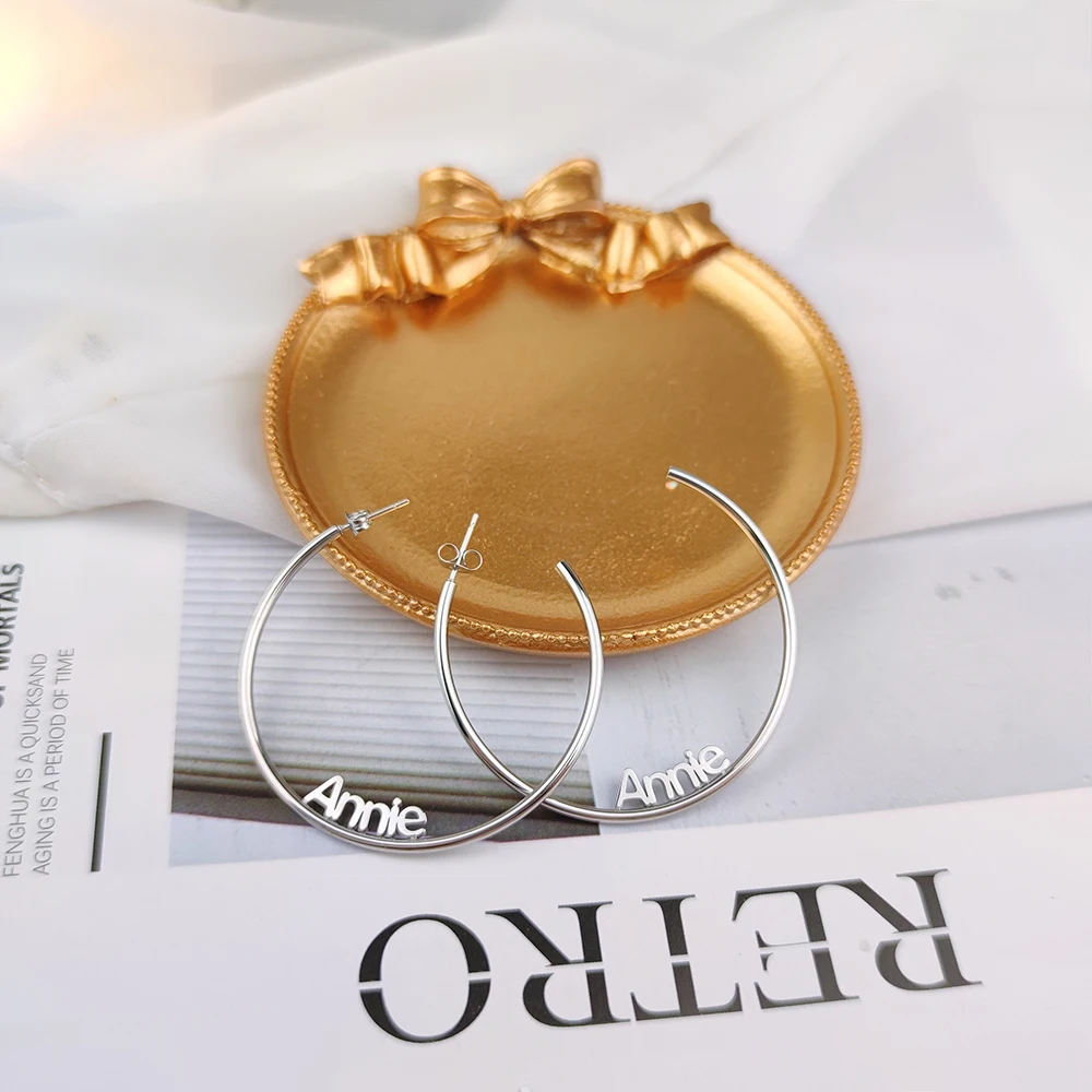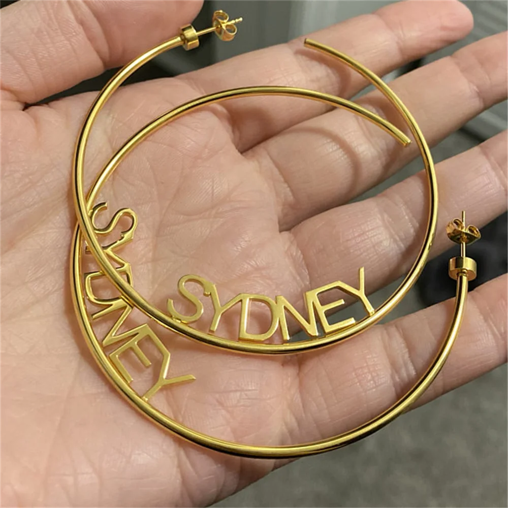 Большие серьги Sherman из нержавеющей стали с именем на заказ, большие круглые серьги-кольца с именной табличкой, ювелирные изделия на заказ