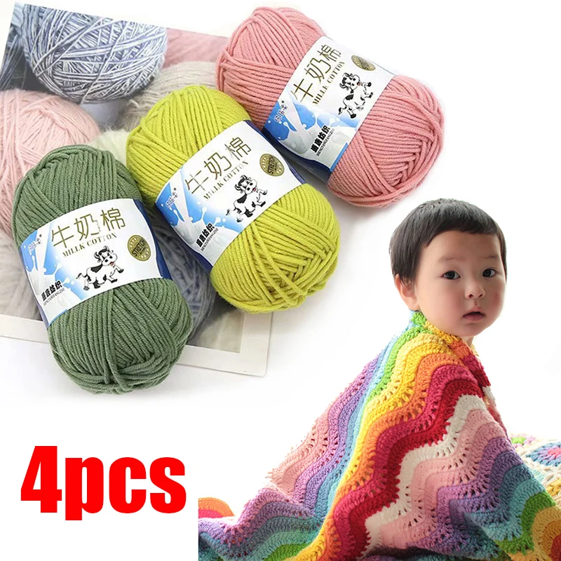 4 шт., 50 г, пряжа для вязания, пряжа для вязания крючком, Детские хлопковые шарики, пряжа для вязания, молочная хлопковая пряжа
