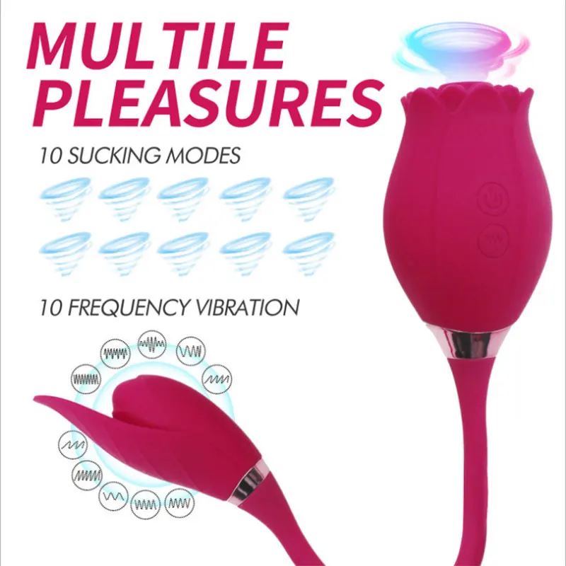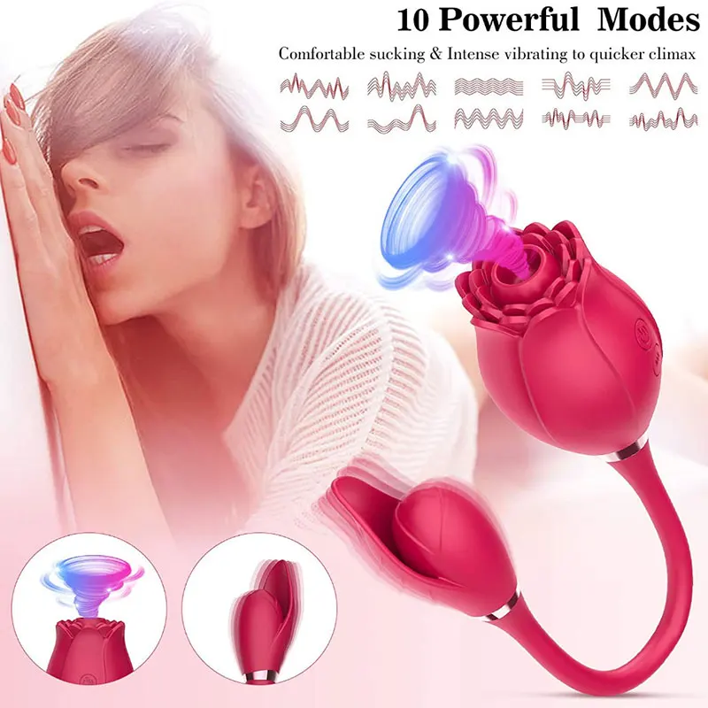Вибратор для сосания розы с двойной головкой имеет форму розы, и вы можете испытать максимальное удовольствие от орального секса и вибрационной стимуляции в любое время.
