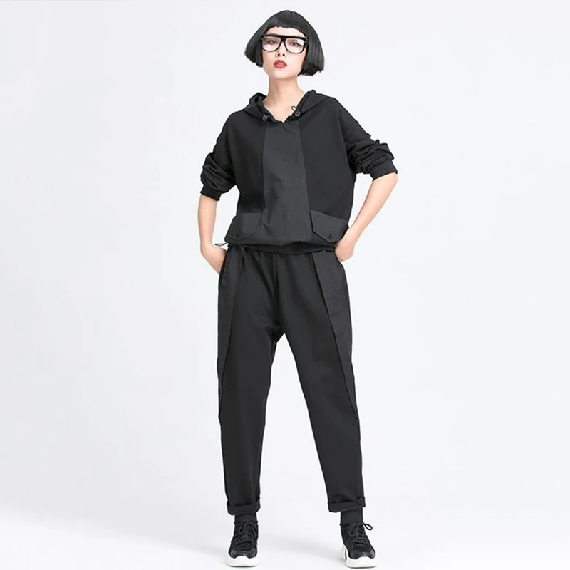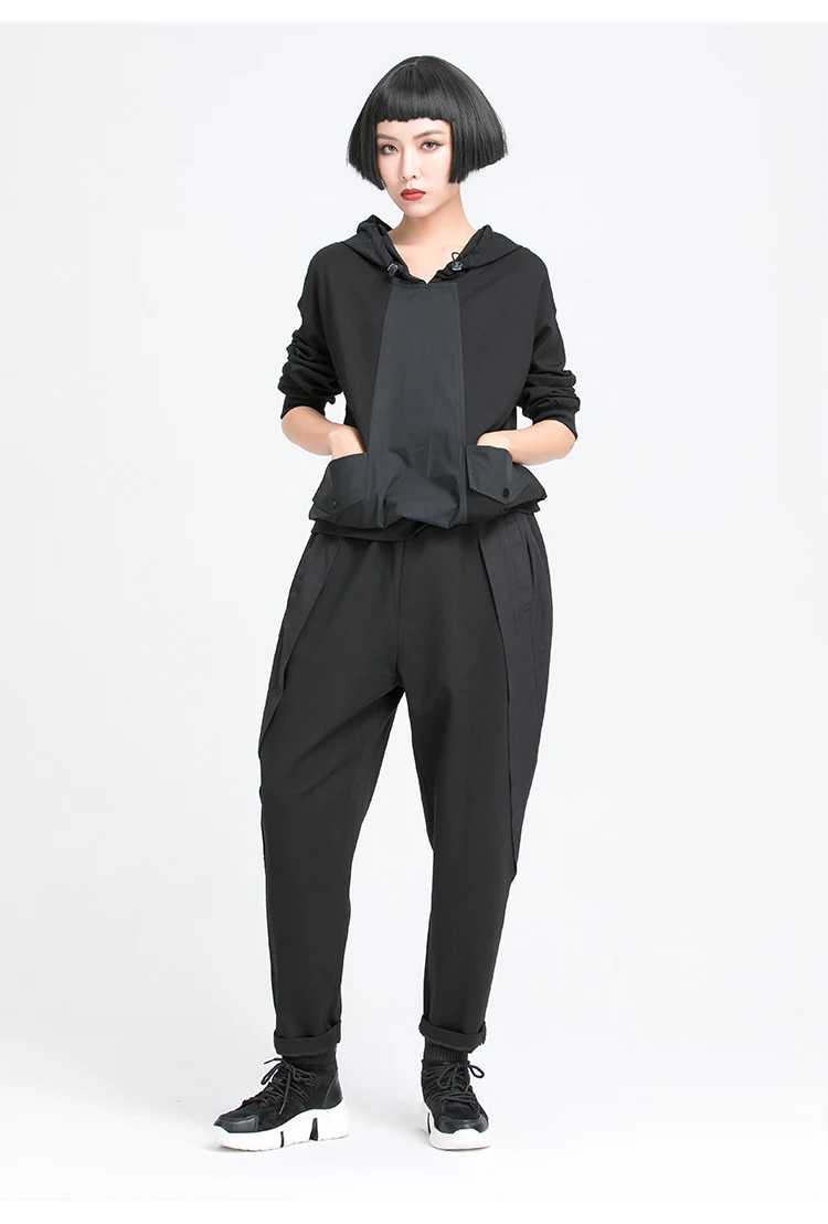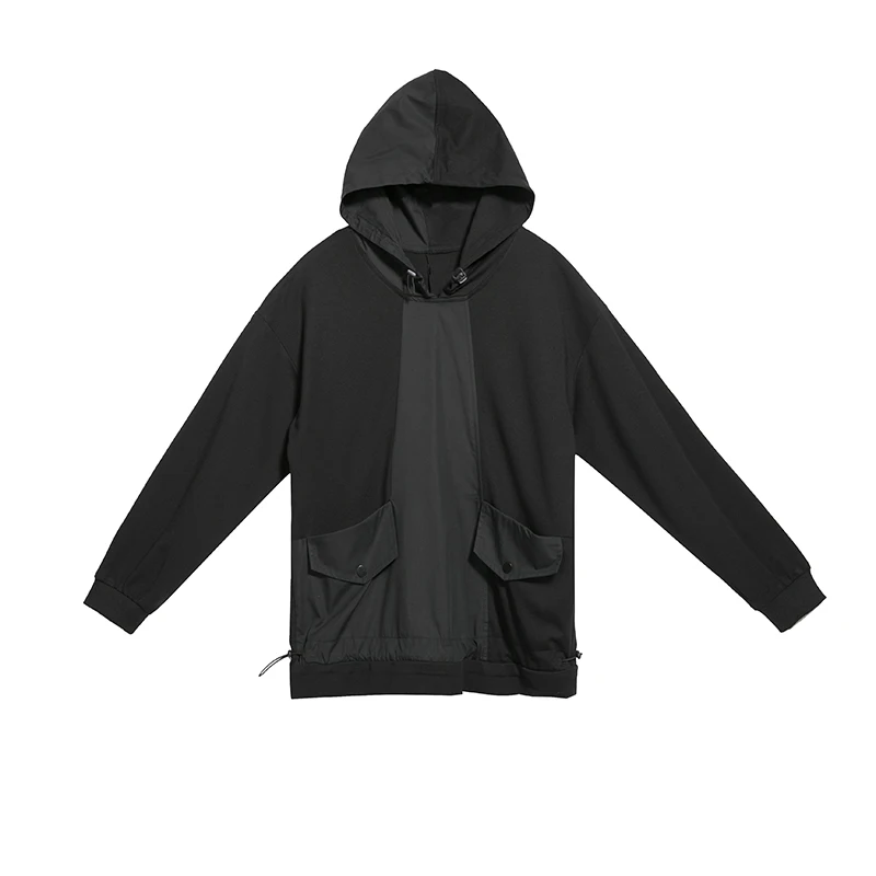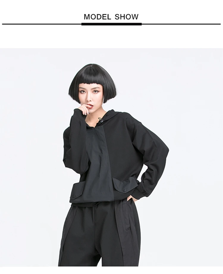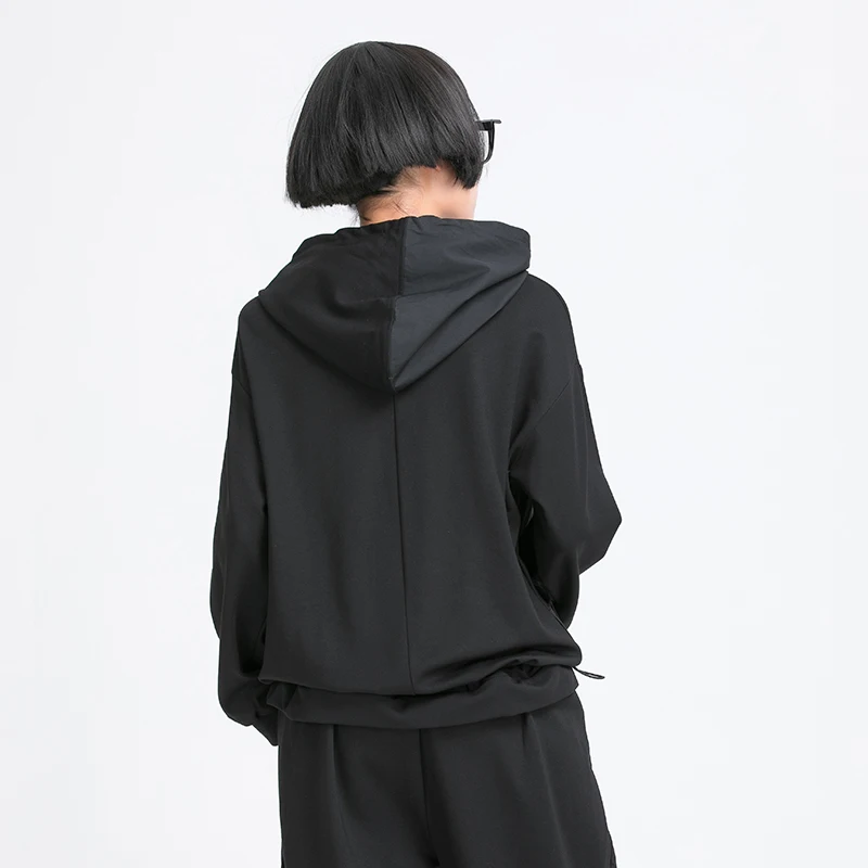 Толстовка Женская, черная, с капюшоном, с длинным рукавом, в стиле пэчворк, весна-осень, 2021