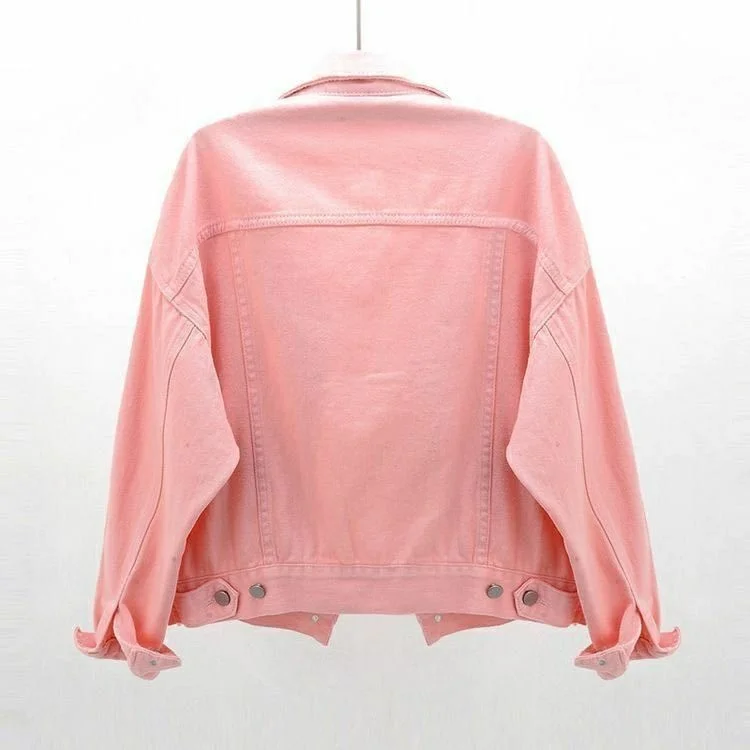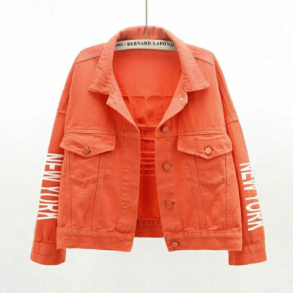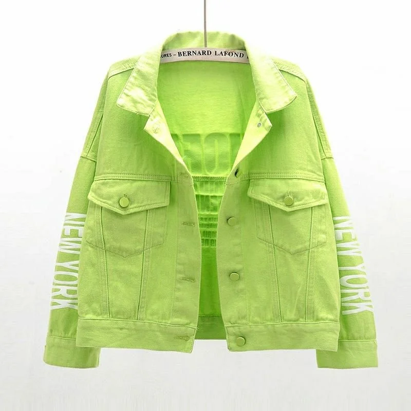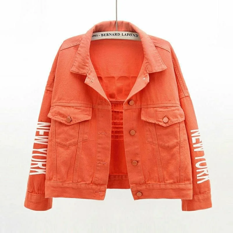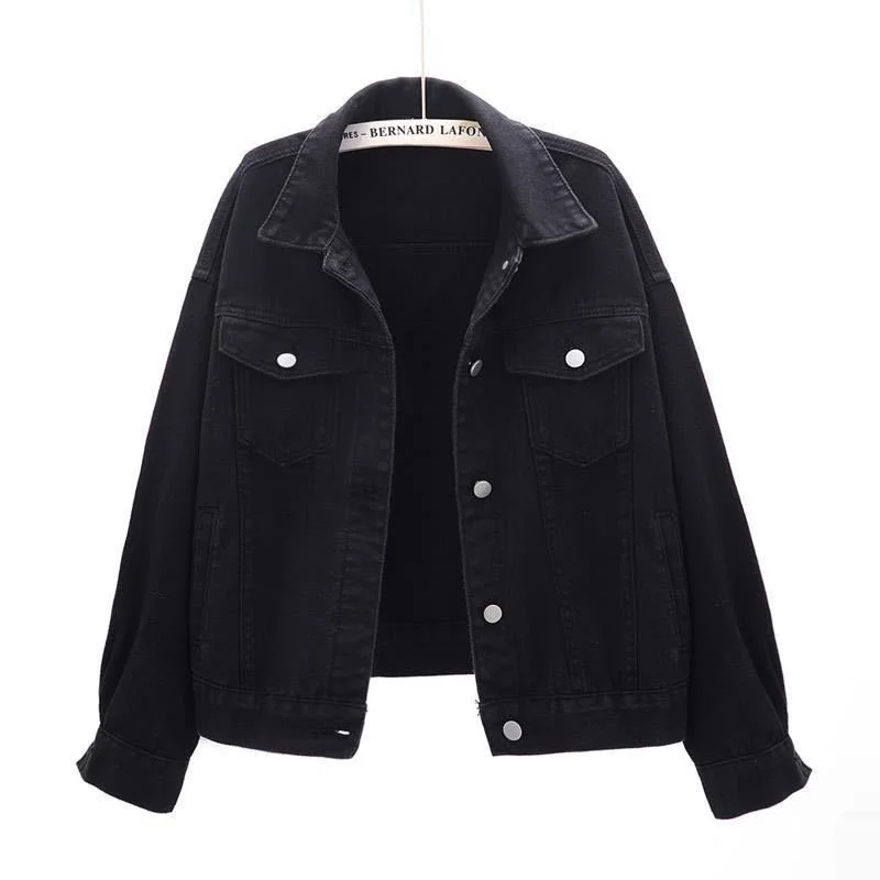 Женская джинсовая куртка с буквенным принтом, однобортная свободная черная короткая джинсовая куртка в Корейском стиле, весна-осень 2021