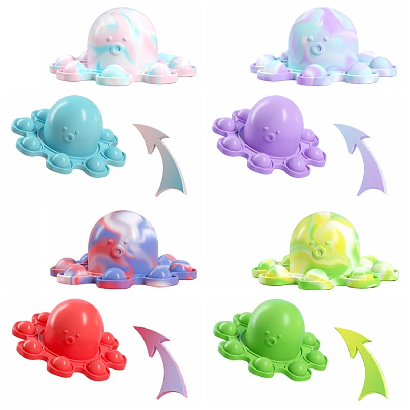 Kawaii антистрессовые рандомные игрушки, мини-пузырьки, флип, двусторонний Осьминог для аутизма, дети, взрослые игрушки для снятия стресса
