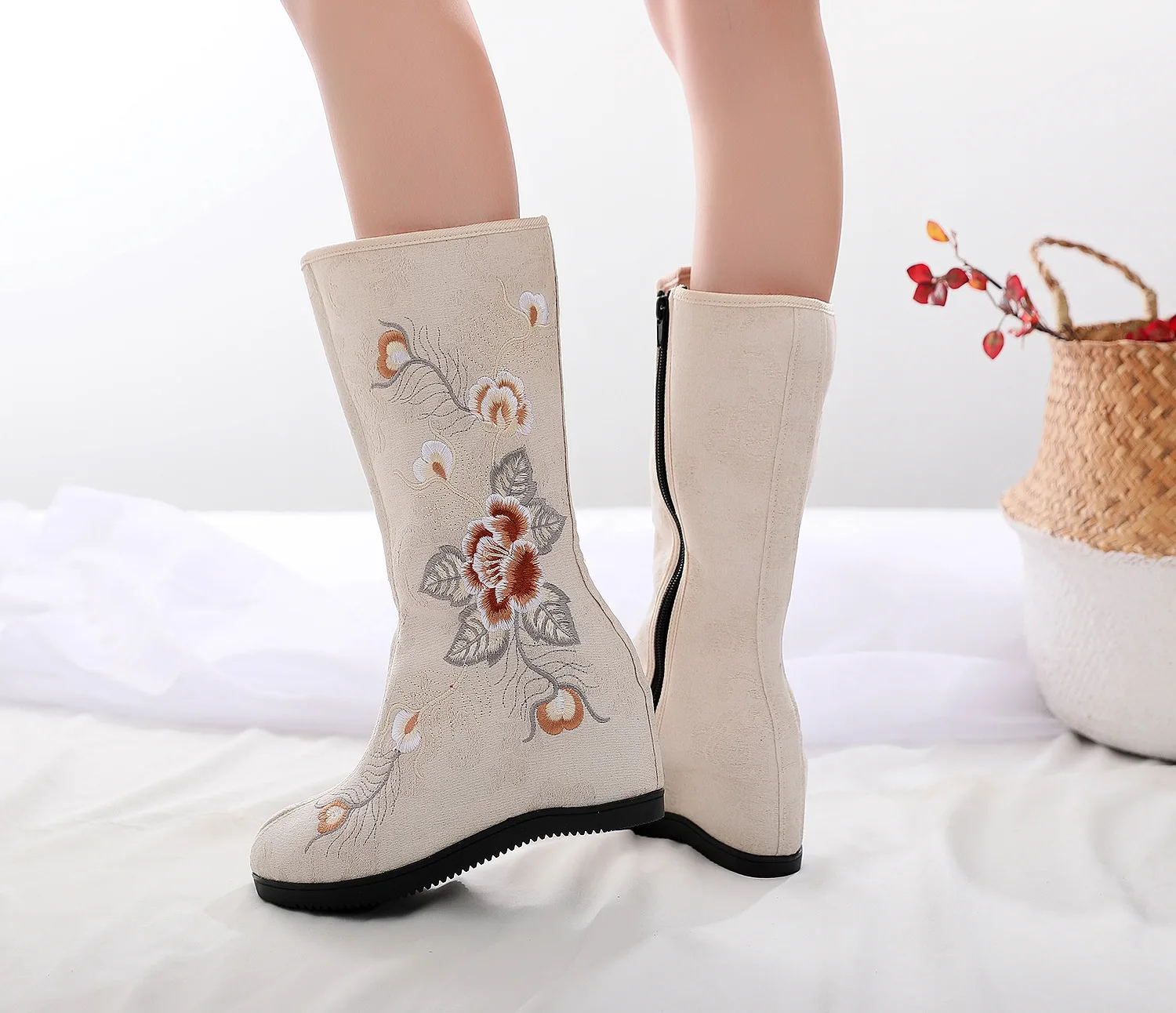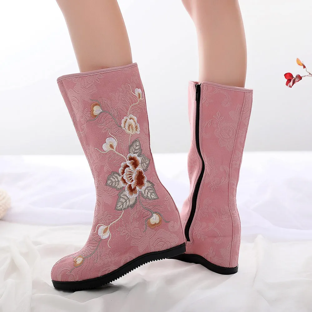 Женские ботинки до середины икры YourSeason, удобные осенне-зимние ботинки на скрытой танкетке с китайской вышивкой