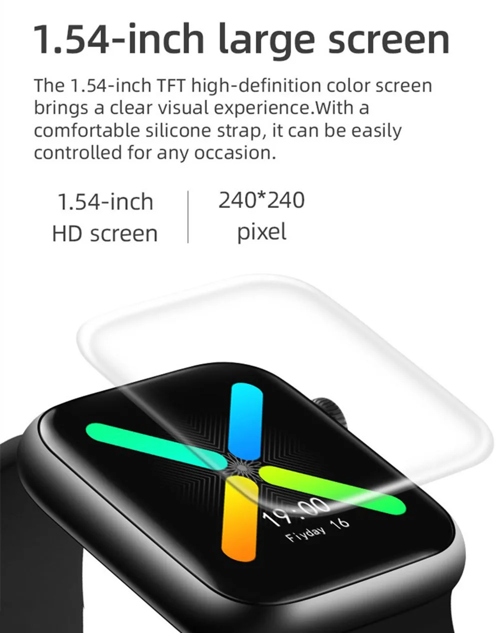 Смарт-часы 2021 X8 с функцией отслеживания пульса, с экраном 1,54 дюйма, для Apple, Xiaomi, Samsung и Huawei PK Y68 D20