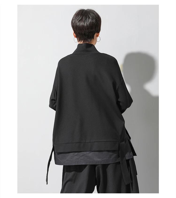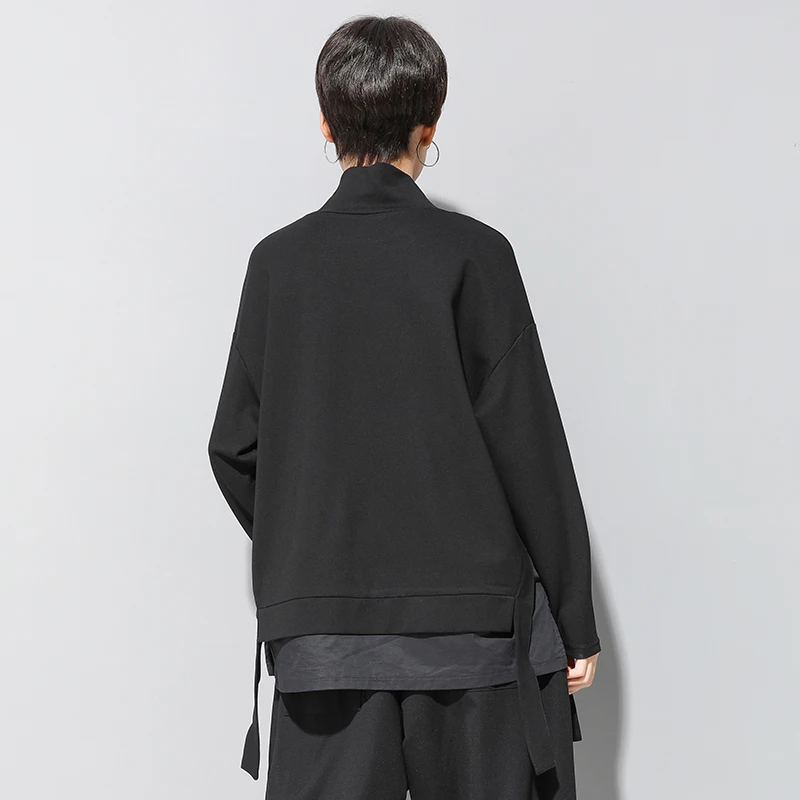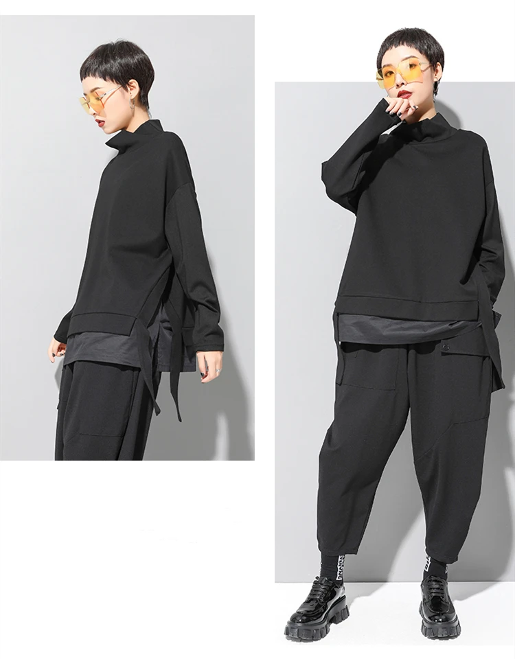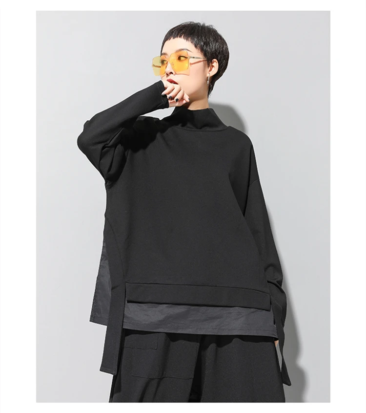 Женская Асимметричная футболка, с высоким воротником и длинным рукавом, с разрезом, свободная повседневная футболка, топы, модная одежда, весна-осень 2021