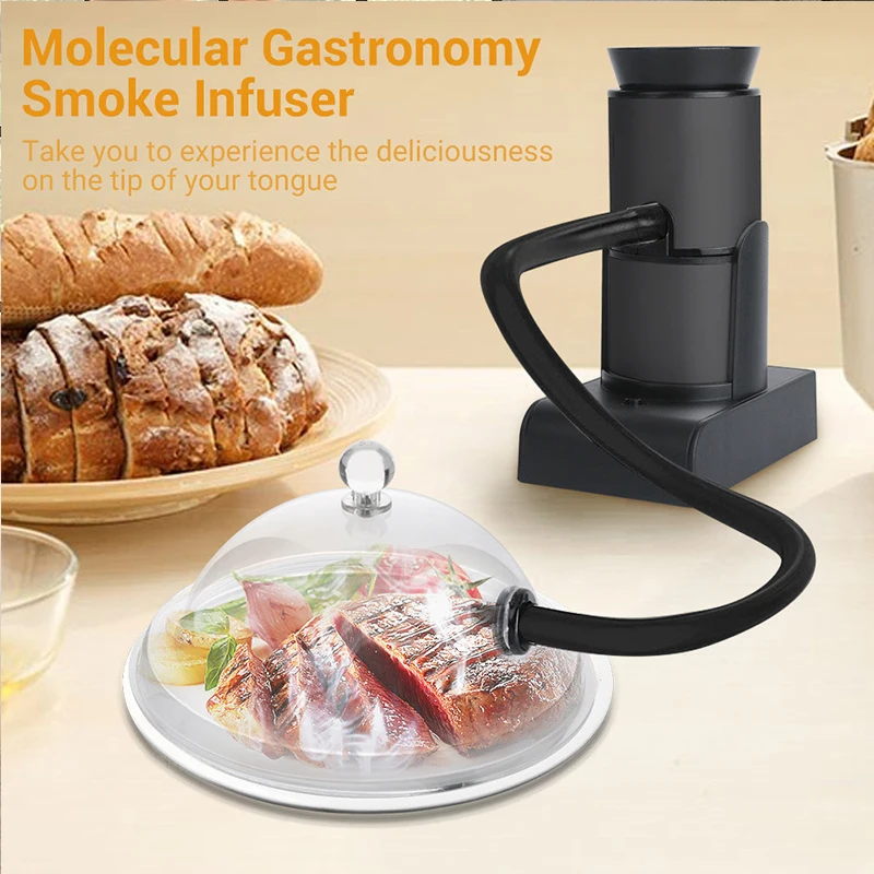 Специальное назначение продукта: рыба, морепродукты, молекулярная кухня, коктейли, ореховые закуски (курительная пушка быстро использует различные виды опилок, чая, трав, специй, сена, И высушенные цветы для дыма. Для добавления холода в еду или напитки требуется всего 3-5 минут. Дым и аромат)
