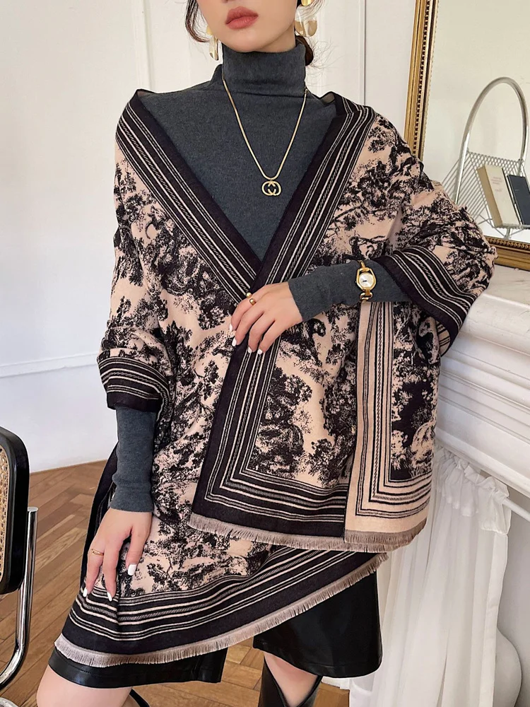Роскошный брендовый кашемир, Женский дизайнерский шарф с принтом, зимние теплые шарфы, толстое одеяло 2021, двустороннее одеяло