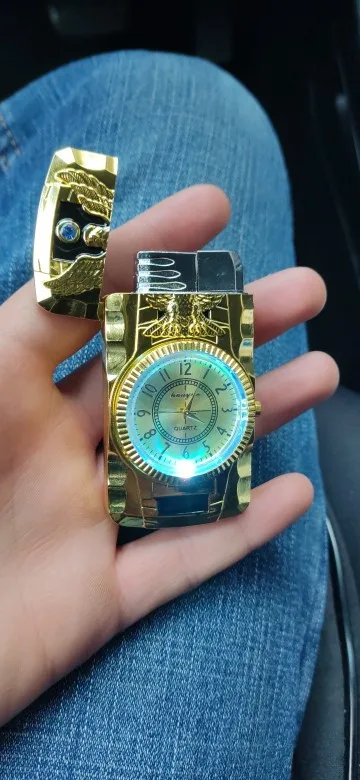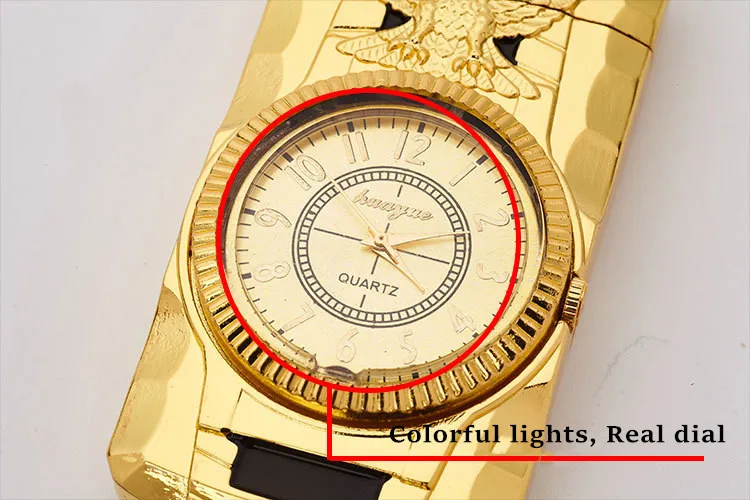 Роскошные золотые часы, яркий струйный светильник, турбонадутый бутановый газовый светильник, ветрозащитный металлический светильник для сигарет