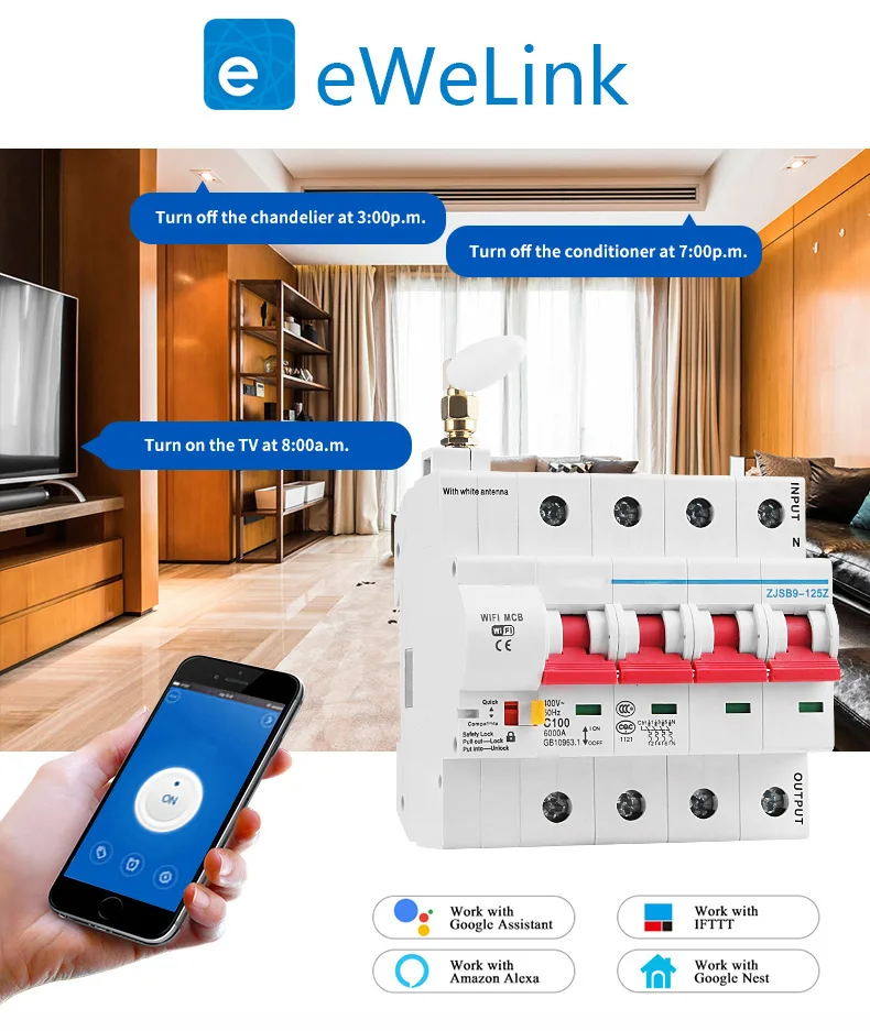 Пульт дистанционного управления Wi-Fi eWeLink, Голосовое управление с Amazon Alexa и Google Home, 4P, Wi-Fi, MCB, 16A 125A, IFTTT