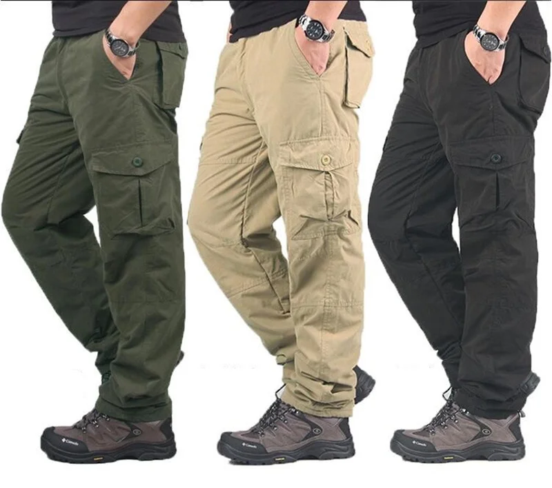 Мужские теплые рабочие брюки-карго, повседневные хлопковые брюки в ...