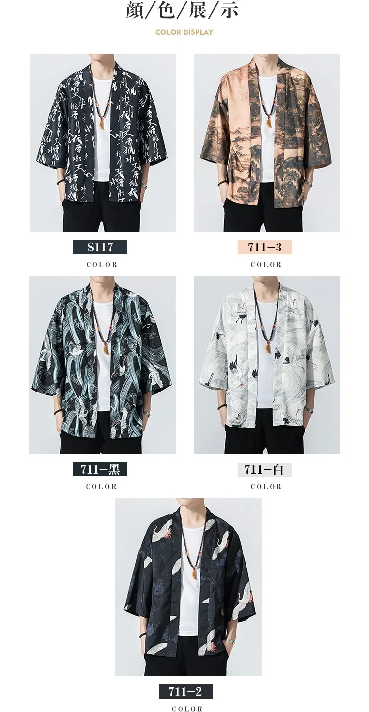 Мужской кардиган-кимоно, в японском стиле, Повседневный, свободный,...