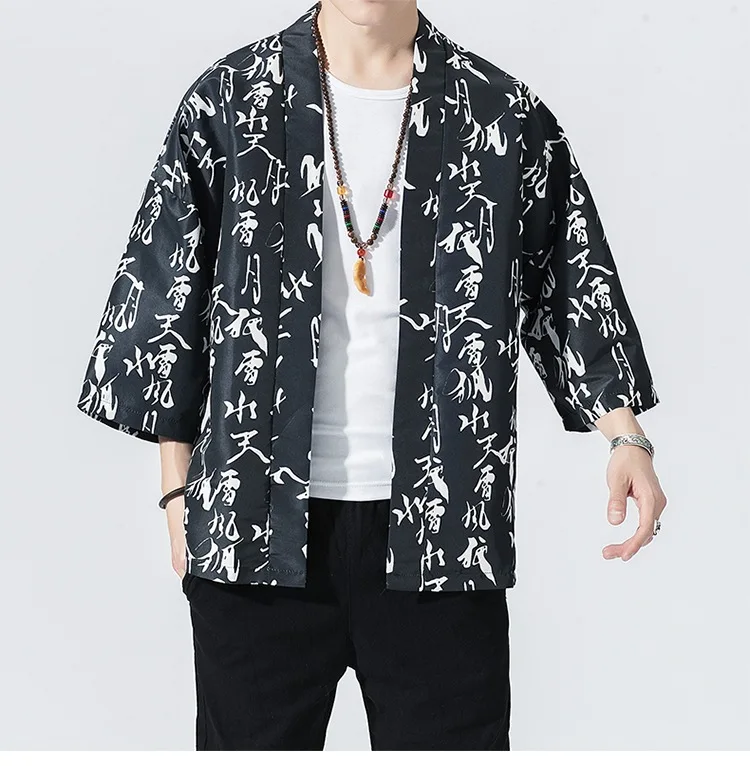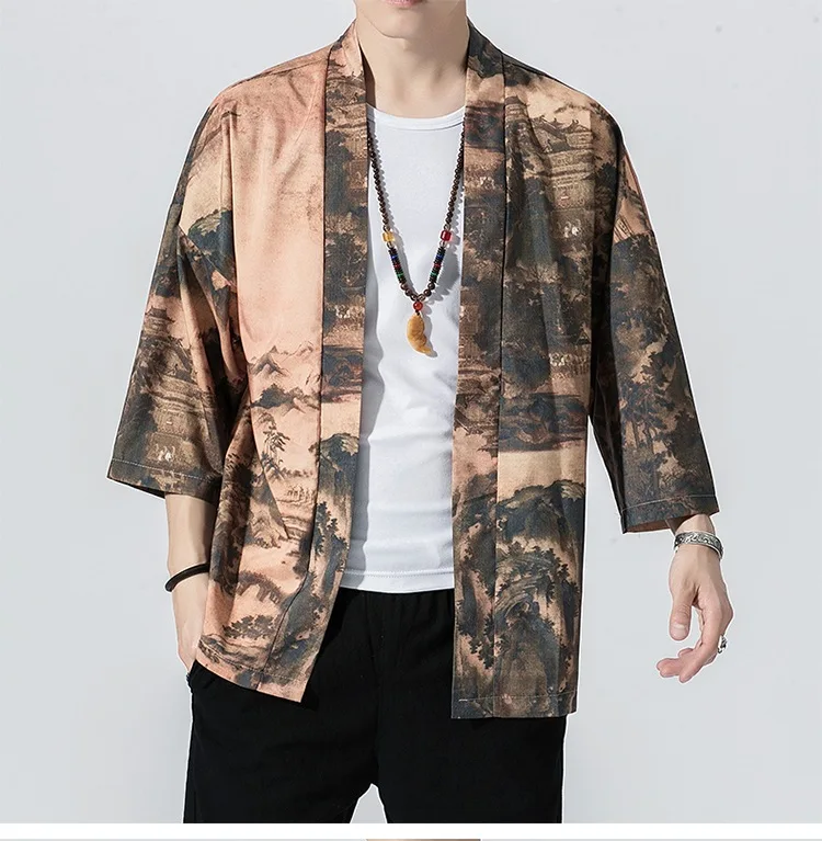 Кимоно мужское в японском стиле, юката, свободный солнцезащитный ка...