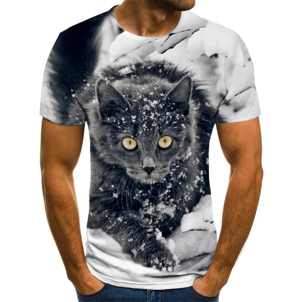 2021 Новая Мужская модная классная футболка с кошачьим принтом, лет...