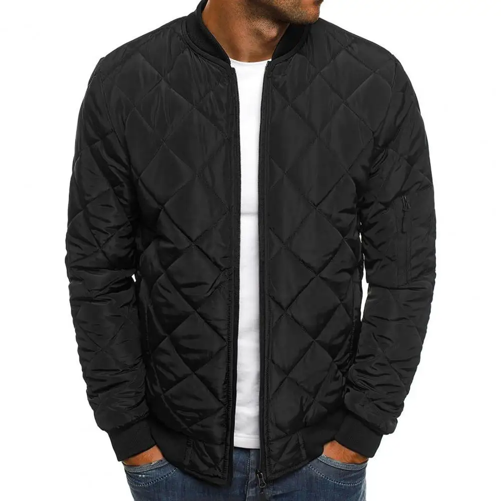Мужская осенне-зимняя куртка, однотонная теплая куртка с воротником-стойкой, с длинным рукавом, на молнии, для офиса