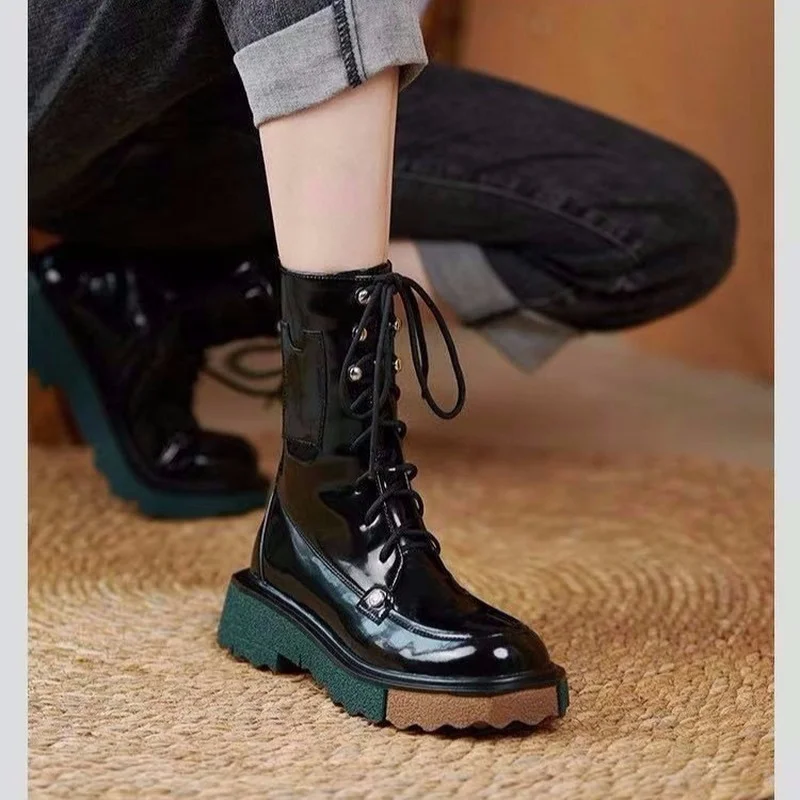 Ботинки женские из лакированной кожи, на среднем каблуке, осень 2021