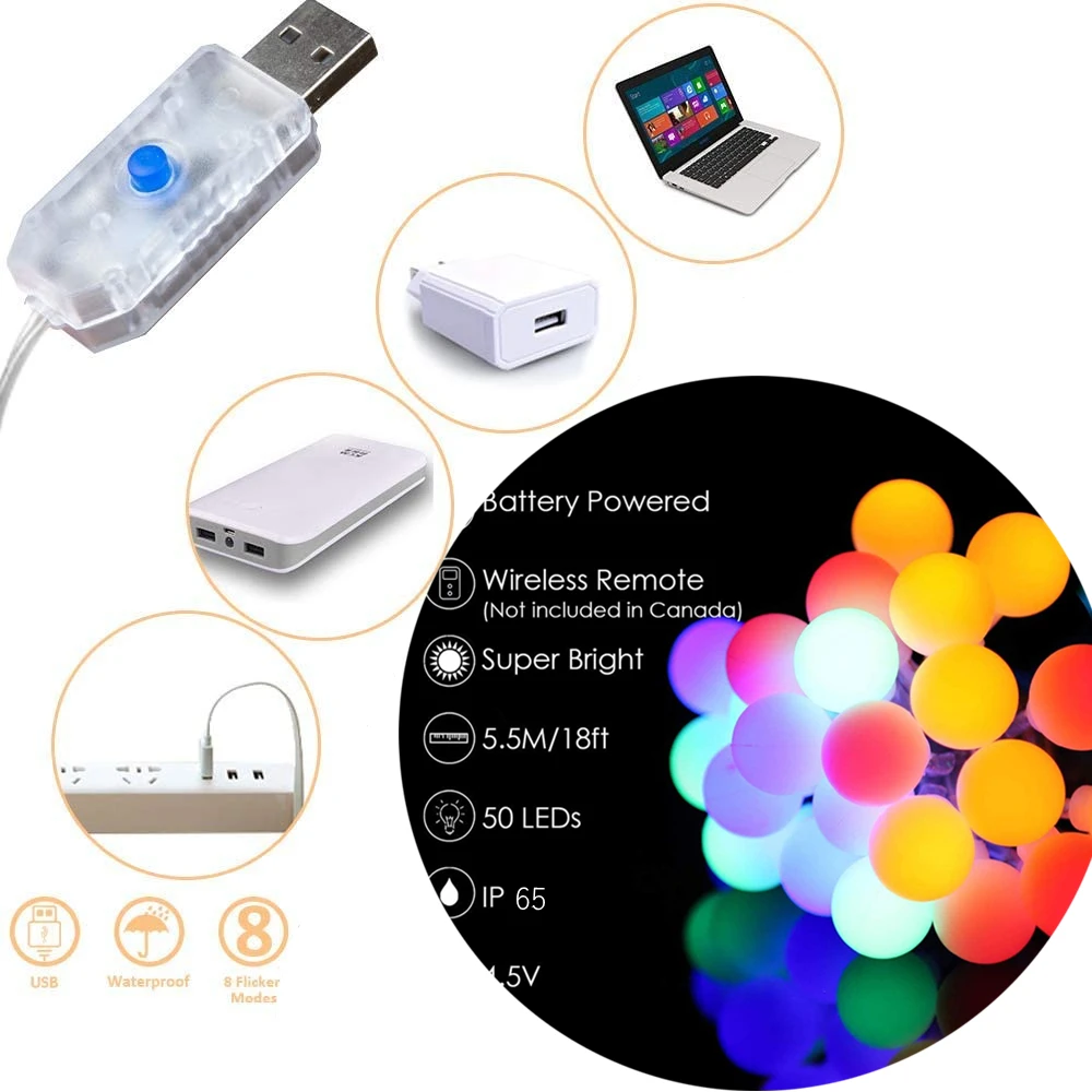 Водонепроницаемость: -- 40 водонепроницаемый (IP65) Светодиодный светильник Феи глобус с веревкой 14,8 футов идеально подходит для внутреннего и наружного декора и праздника. Идеально подходит для сада, гостиной, столовой, спальни, свадьбы, вечерние, Дня Святого Валентина, Хэллоуина, Рождества и т. д.