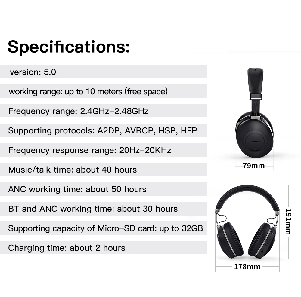 Номер моделиBluedio H2 Wireless Bluetooth Headphones