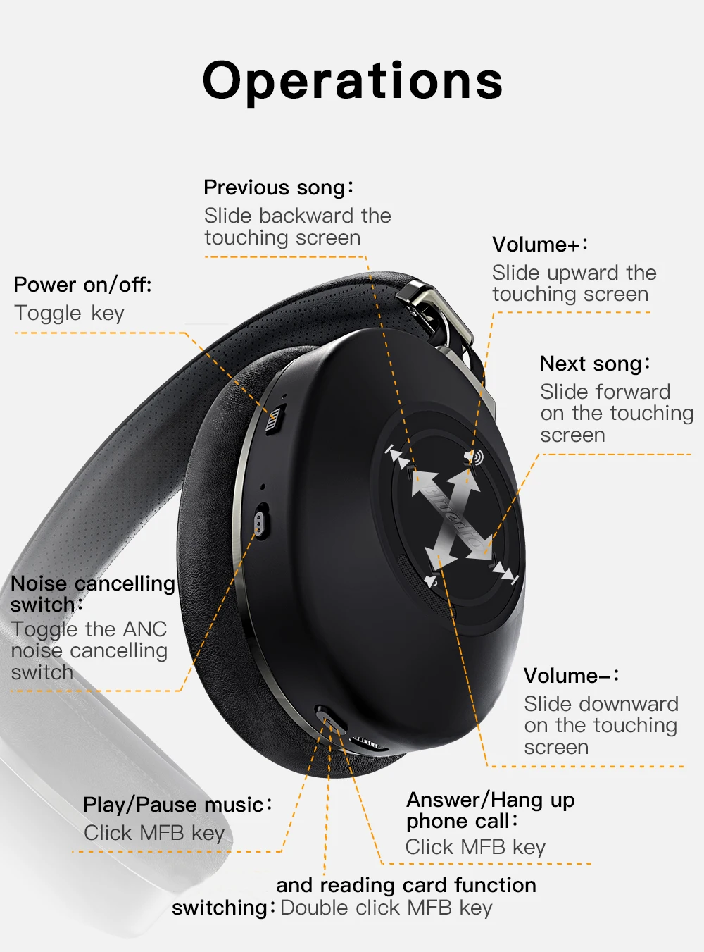Bluetooth-наушники, ANC, беспроводная гарнитура, Bluetooth H2, HIFI...