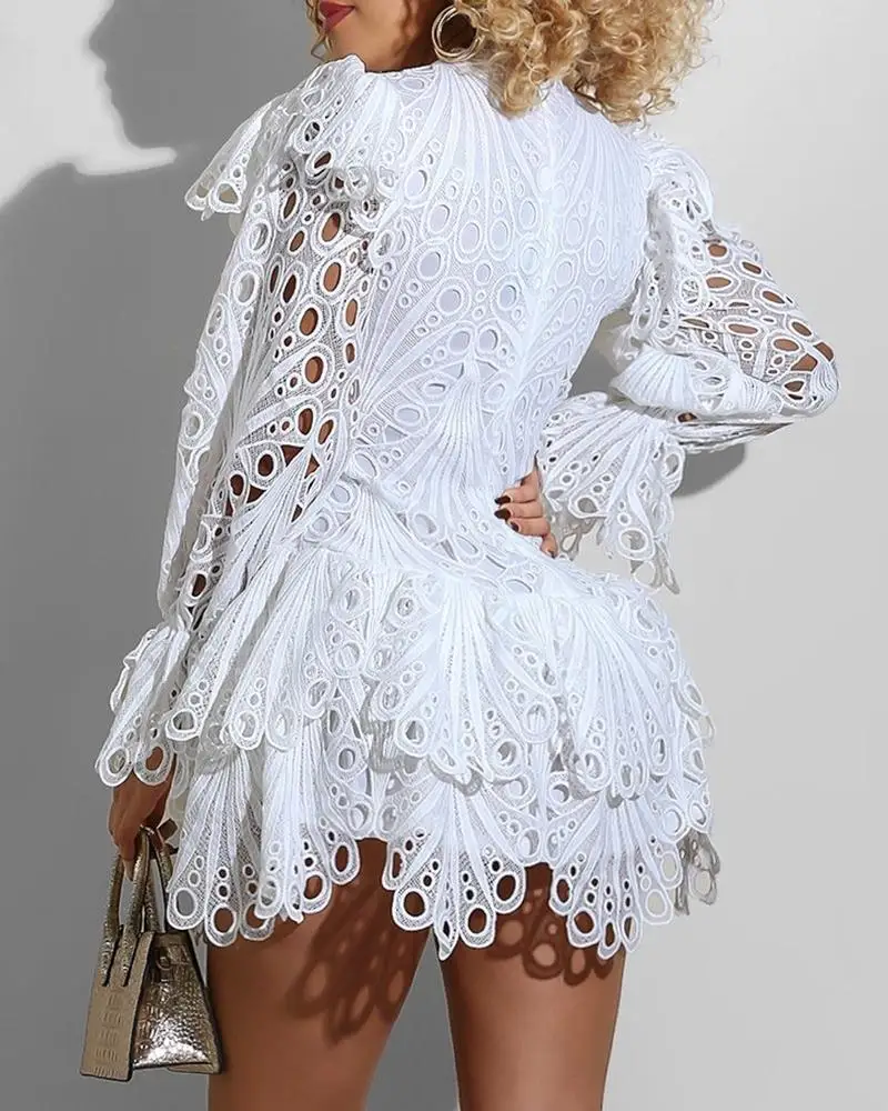 Женское кружевное мини-платье, элегантное облегающее белое платье с длинным рукавом и круглым вырезом, осень 2021