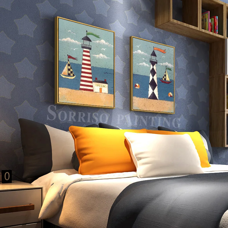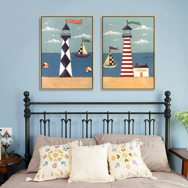 Средиземноморский пейзаж, коридор, настенное искусство, холст, карт...