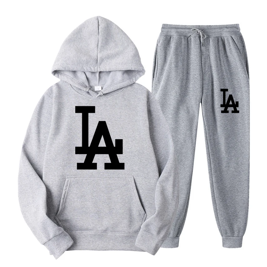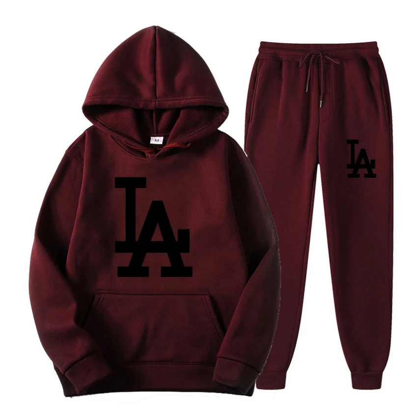 Мужской спортивный костюм, флисовый свитшот с капюшоном и штаны с принтом, Осень-зима