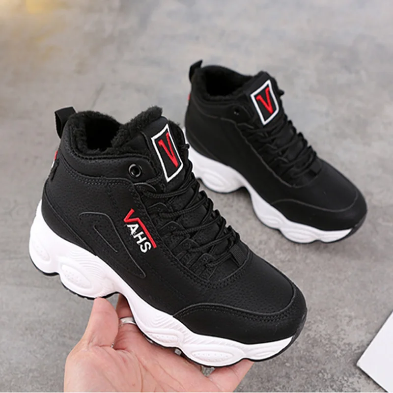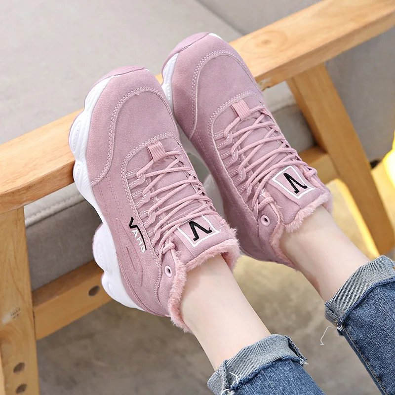 Женские кроссовки на платформе, зимние кроссовки на танкетке, дышащая сетчатая обувь, осенняя плюшевая теплая обувь, женская обувь, увеличивающая рост, 1550