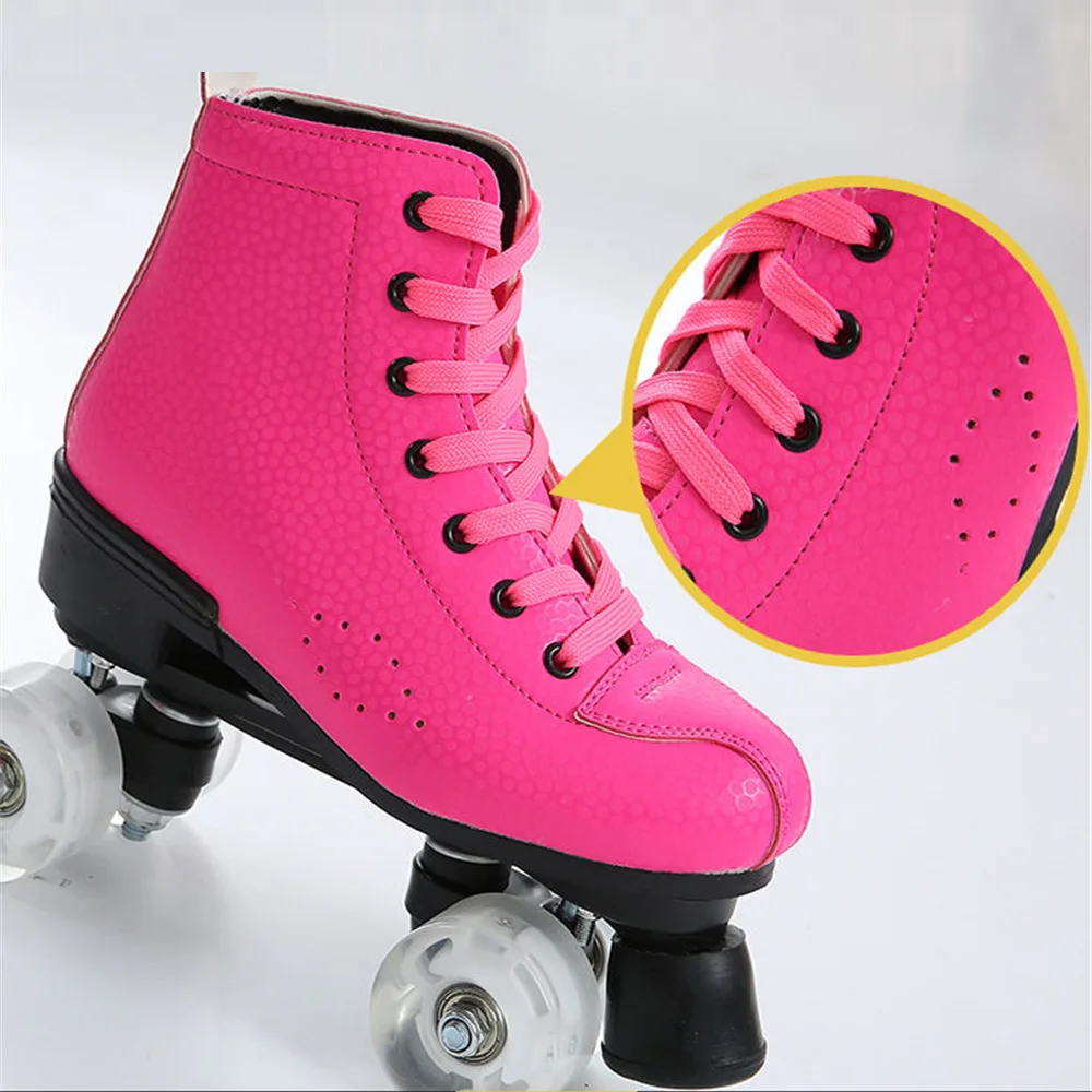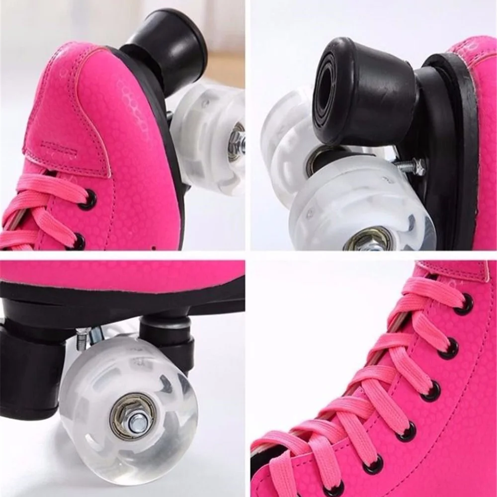 Роликовые коньки, двойная линия, роликовые скейтборды, четырехколесные коньки, обувь для взрослых, искусственная кожа, для мужчин, женщин, детей, патина, черная искусственная кожа, 4 колеса