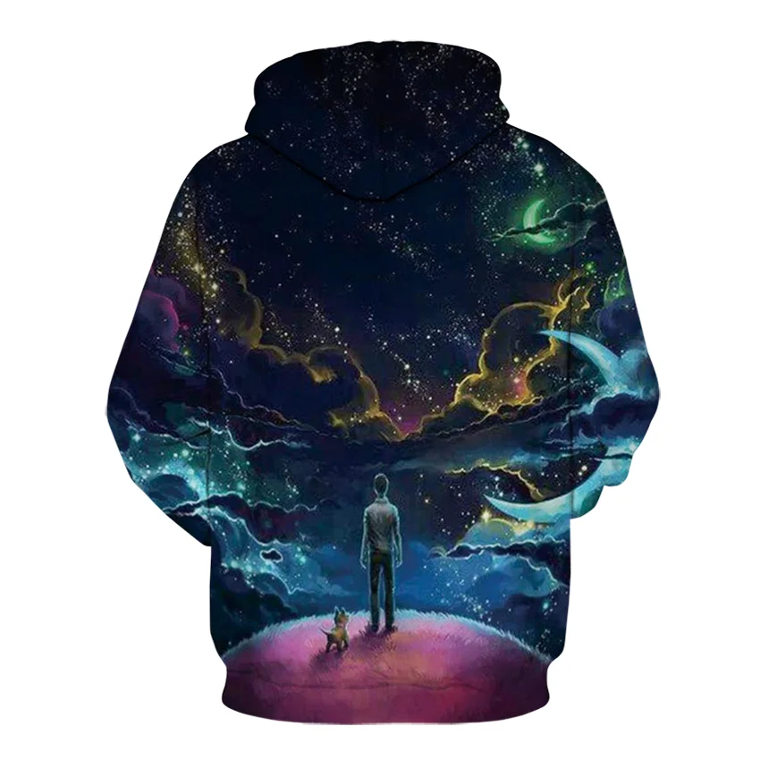 Новинка 2021, модная Популярная Мужскаяженская брендовая одежда, свитшот с забавным 3D-принтом звездного неба и капюшоном, романтические толстовки с рисунком звездного неба, топы