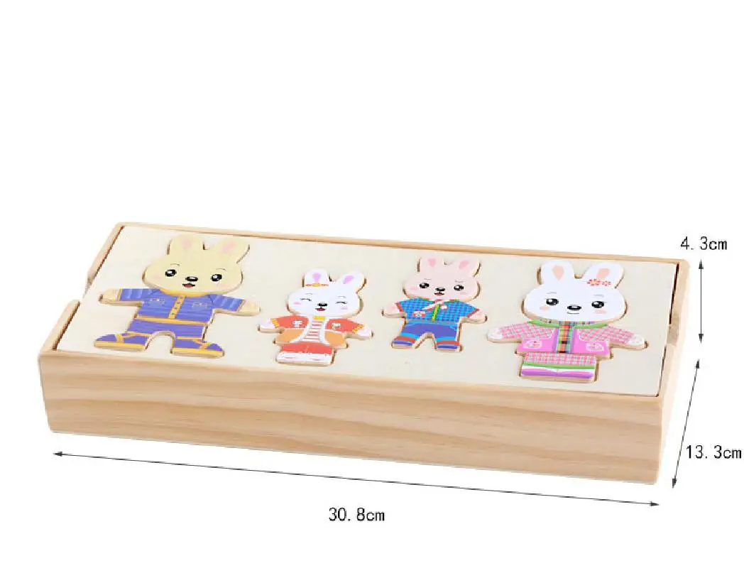 Деревянная игрушка кролик изменить одежду Пазлы Монтессори образова...
