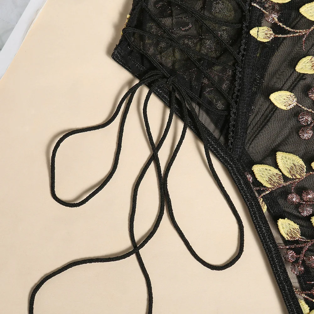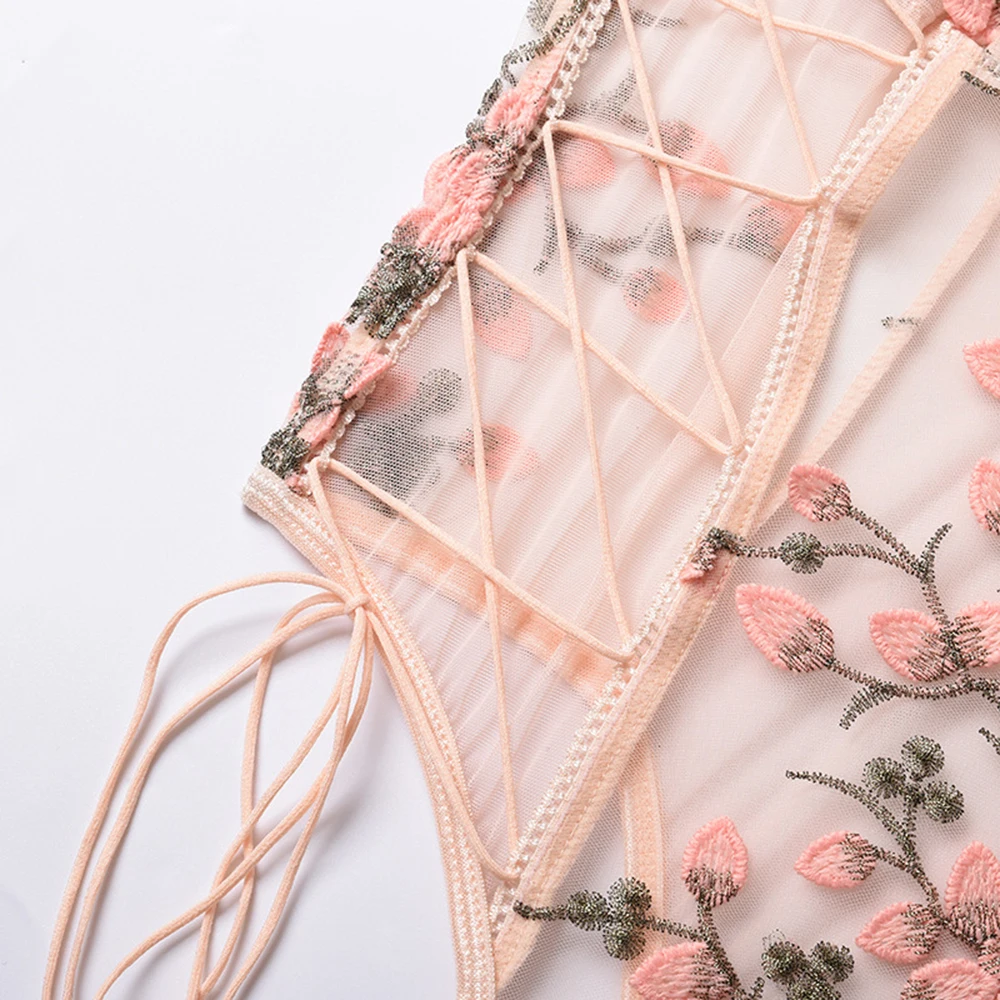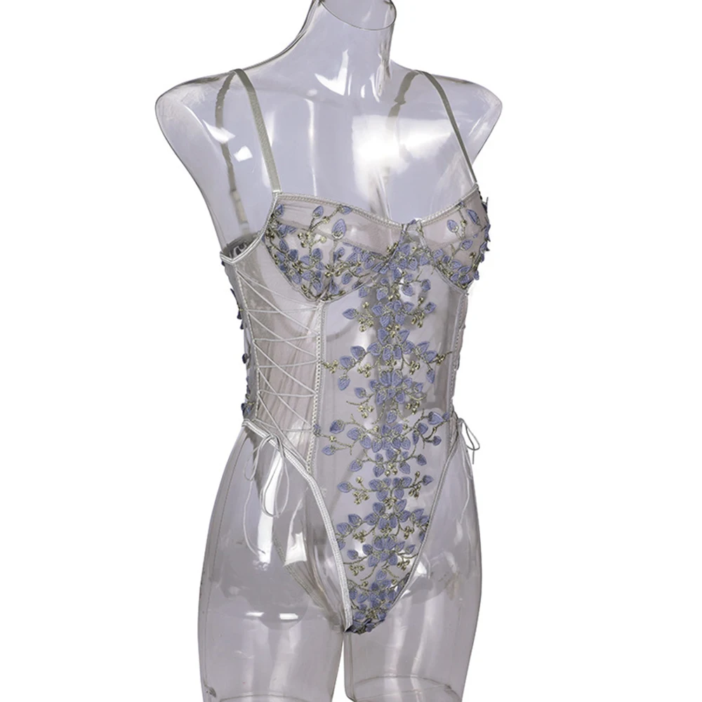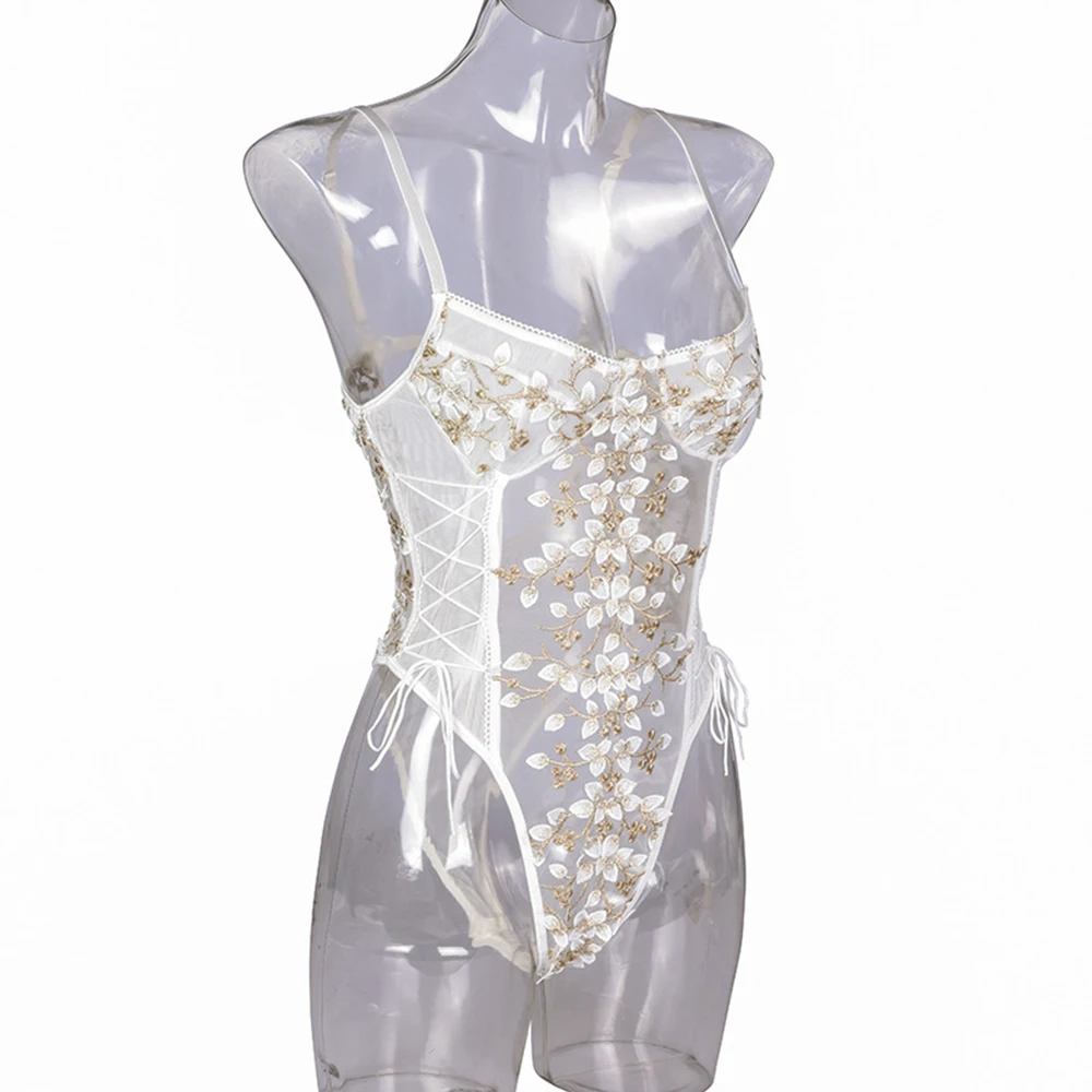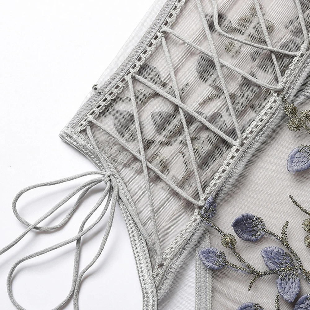 Женское нижнее белье Тедди, сексуальное нижнее белье, эротический корсет, кружевная сетчатая одежда для сна, ночная рубашка, слитный сексуальный пижамный комплект с вышивкой