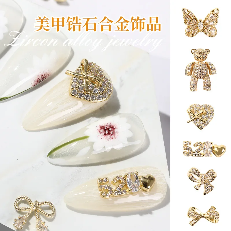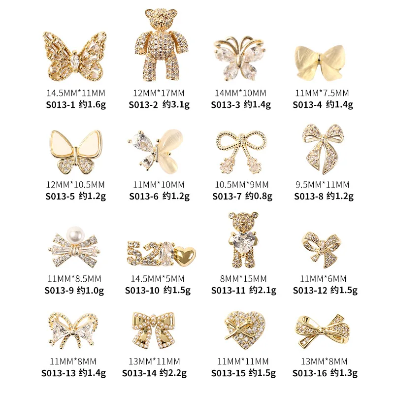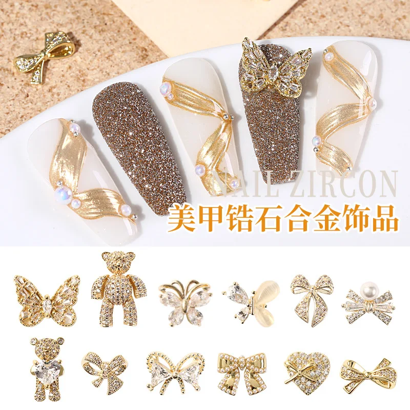 Новый ногтей циркон ювелирные светильник я свет роскошные бриллианты Медведь Бабочка сплав кулон орнамент золотой дизайн наклейки для ногтей Кристаллы Дизайн ногтей