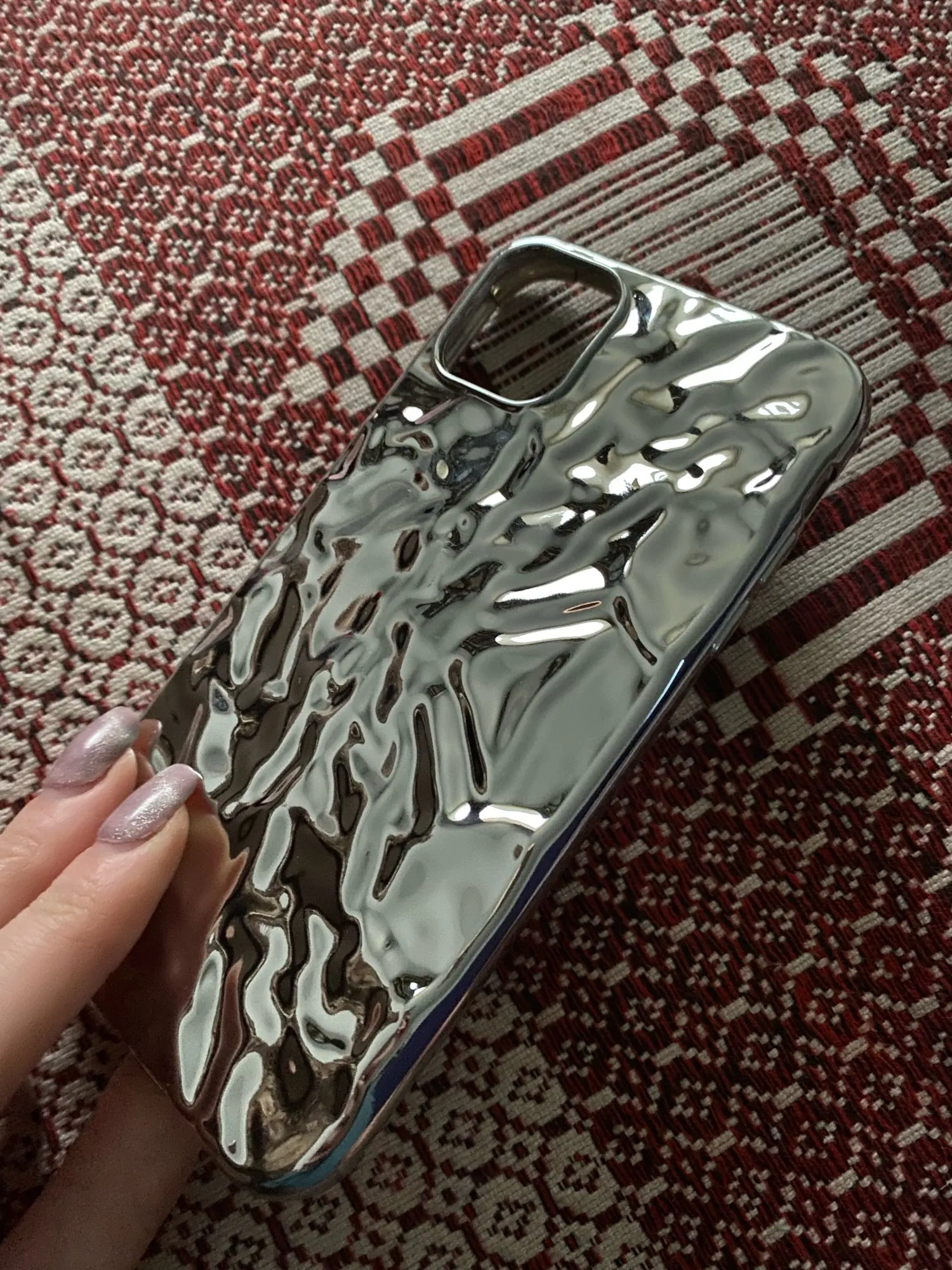 Очень ждала этот чехол. Кажется мягким и немного скольким, не продавливается. Запаха нет. Немного выходит за рамки телефона, выше от экрана на миллиметр. Смотрится бомбически. Эффект металла присутствует, но…остаются отпечатки на чехле и он кажется будто заляпаный( наверное из за изломов они так видны. В целом хороший чехол) рекомендую